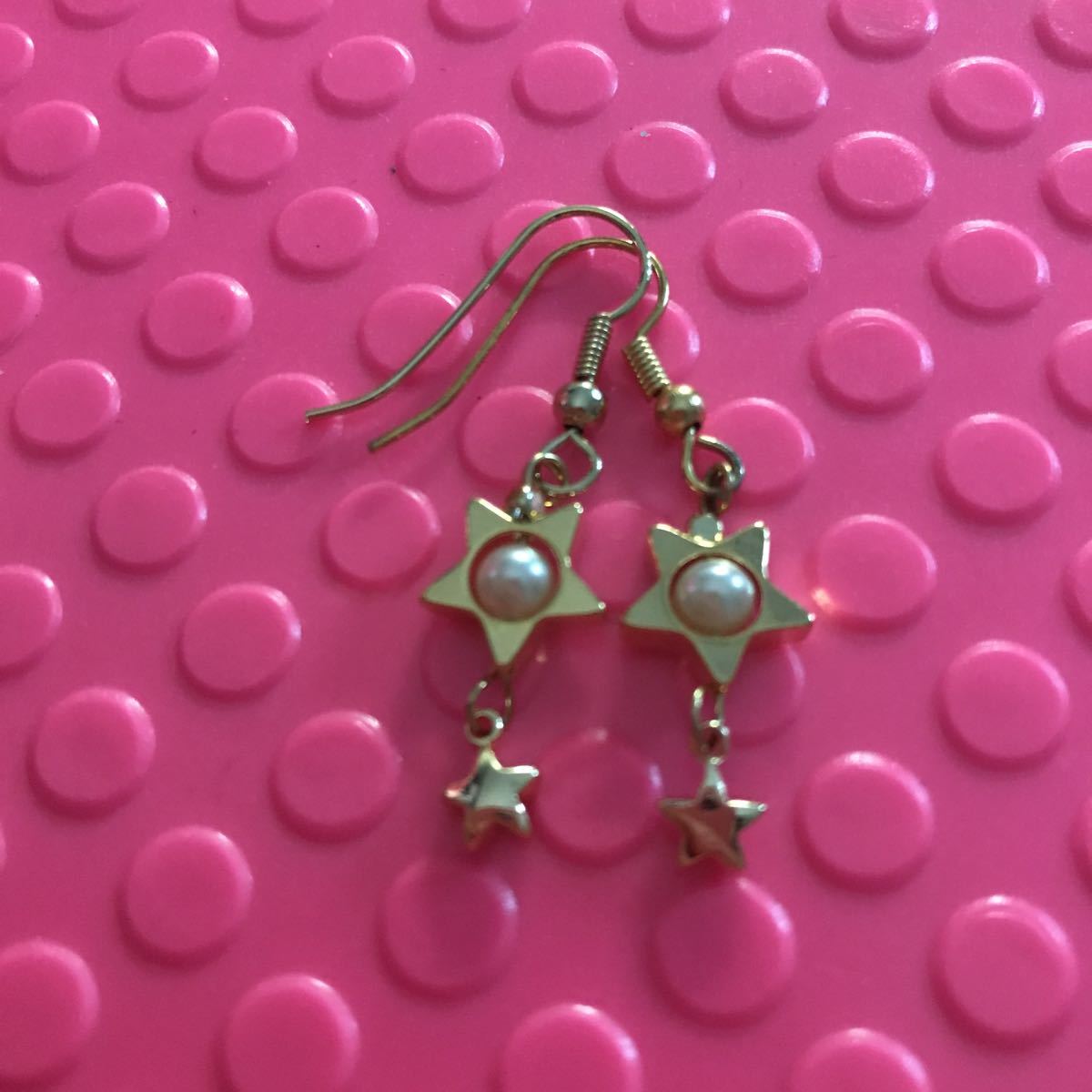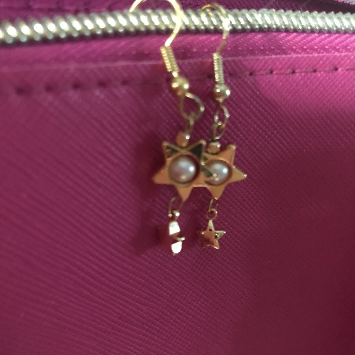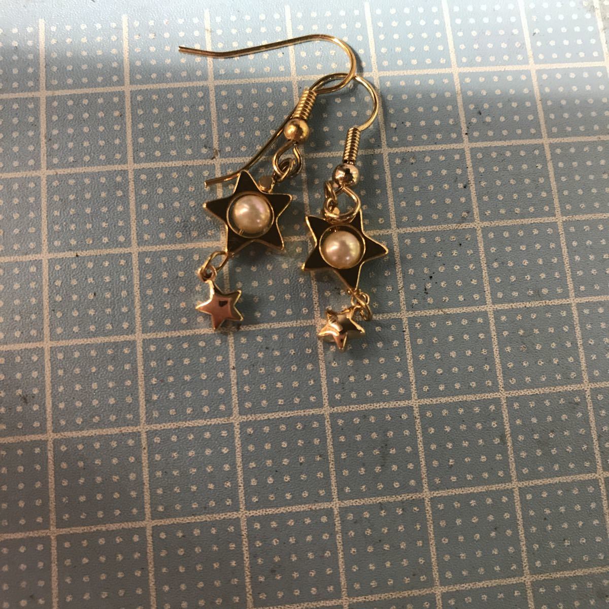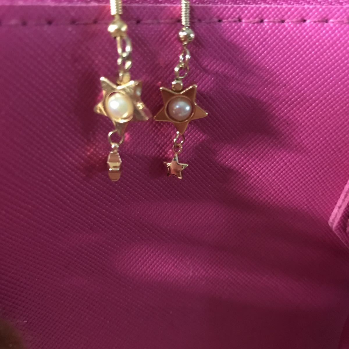 上質なゴールドカラーの星パーツとマジョリカパール4ミリ使用しました。フックはサージカルステンレス使用しております。小ぶりで可憐なピアスです。