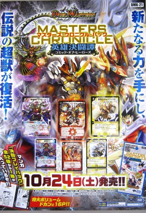 非売品 デュエルマスターズ DMX-21 マスターズ・クロニクル・パック 英雄決闘譚 コミック・オブ・ヒーローズ 販売告知ポスター B2 (51.5 cm × 72.8 cm) #391 *サイズ約 72.8×51.5(cm)[B2 (51.5 cm × 72.8 cm) ] 未使用品です。状態は画像をご覧ください。なお昔の品の為、キズ、折れ、汚れなど経年変化の場合がございます。また画像に見えない瑕疵の場合が御座いますので予めご了承ください。