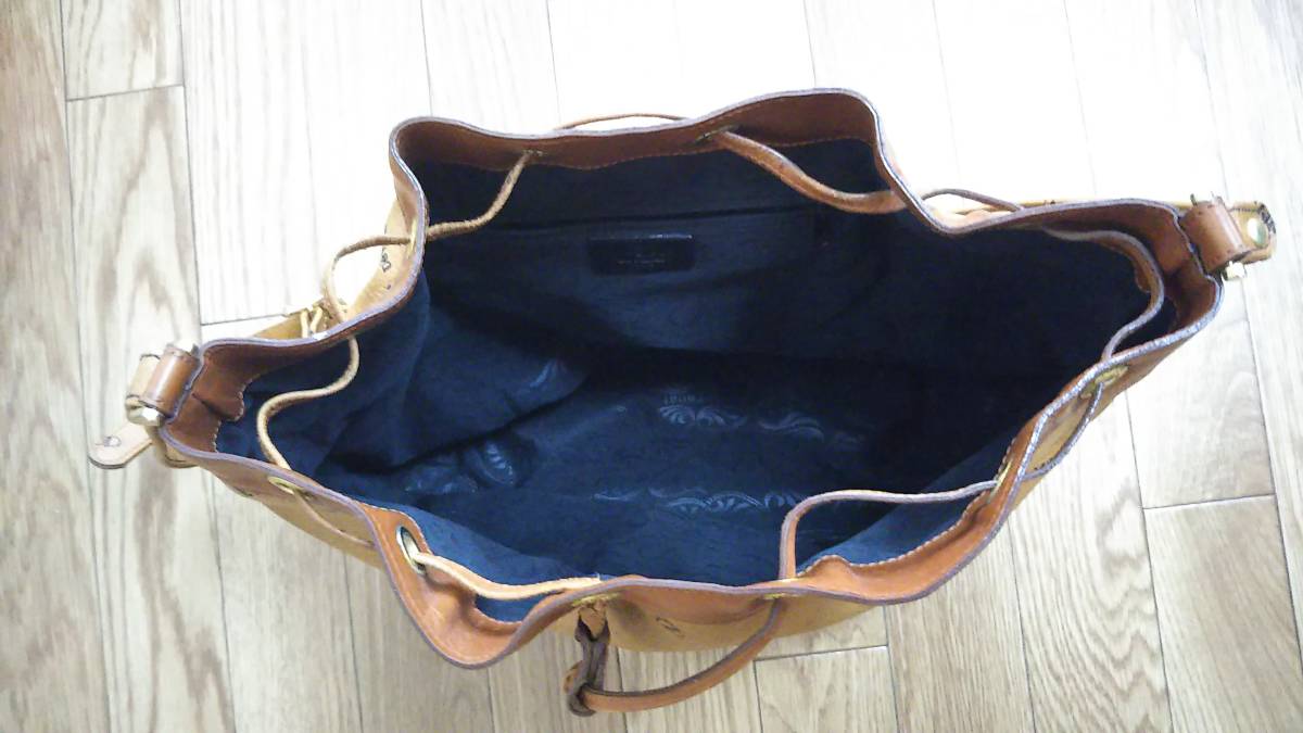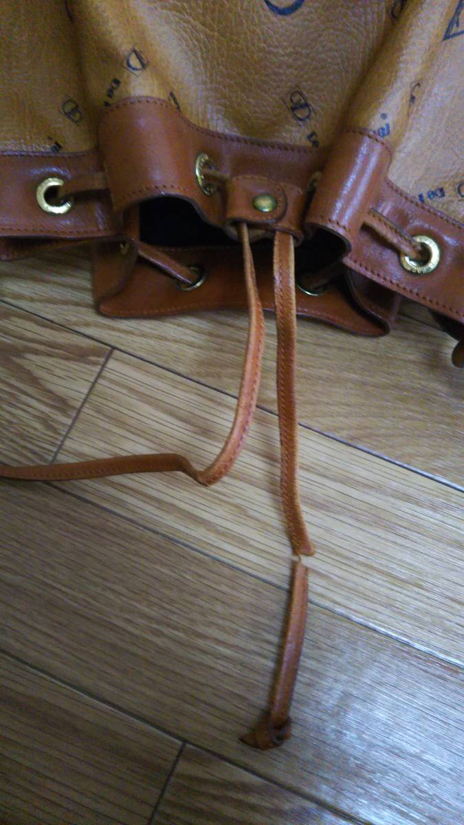 目立ちませんが底面に擦れがあります。口を絞る紐は一部破損してます。状態は写真でご確認ください。