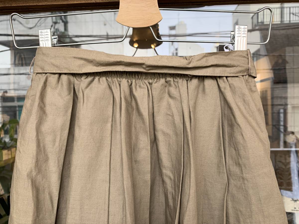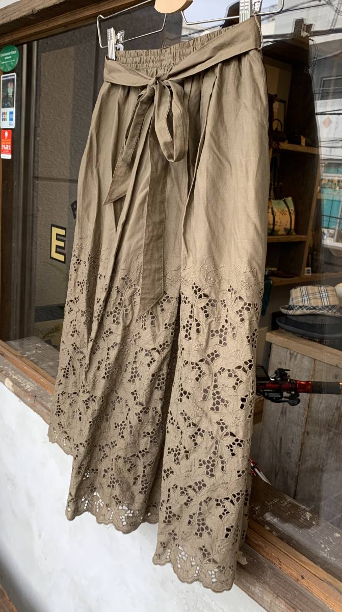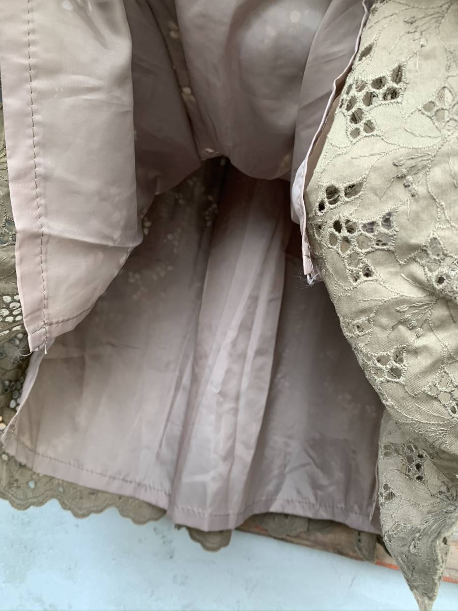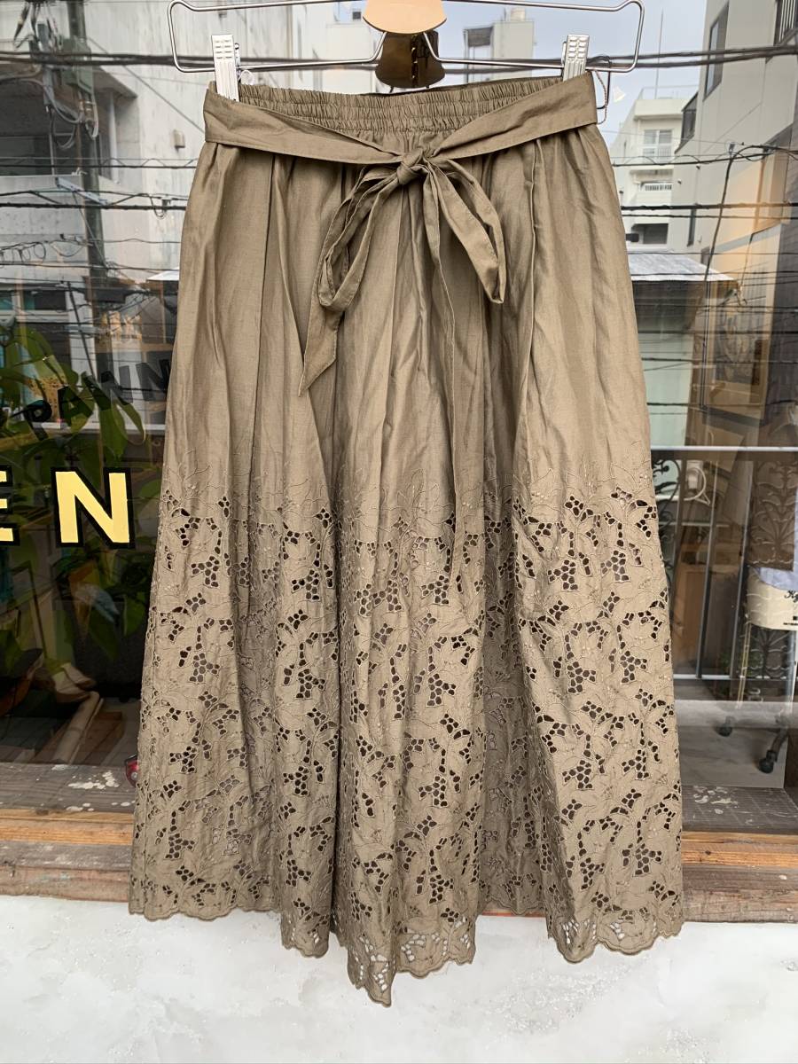 ★SS★カーキ★レース★ロング丈★フレアー★ギャザー★スカート★レディース★サイズM★ウエスト63-69cm★コットン★ベルト付★花柄★