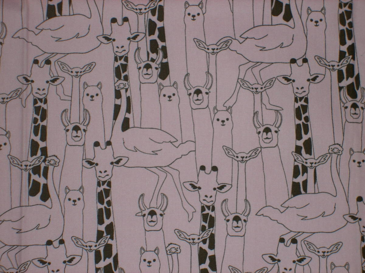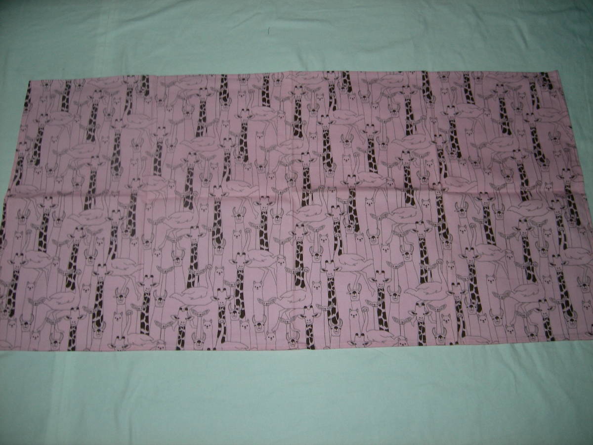 手作り、綿100%、テーブルクロス、キリン、アルパカ、ダチョウ、ピンク
