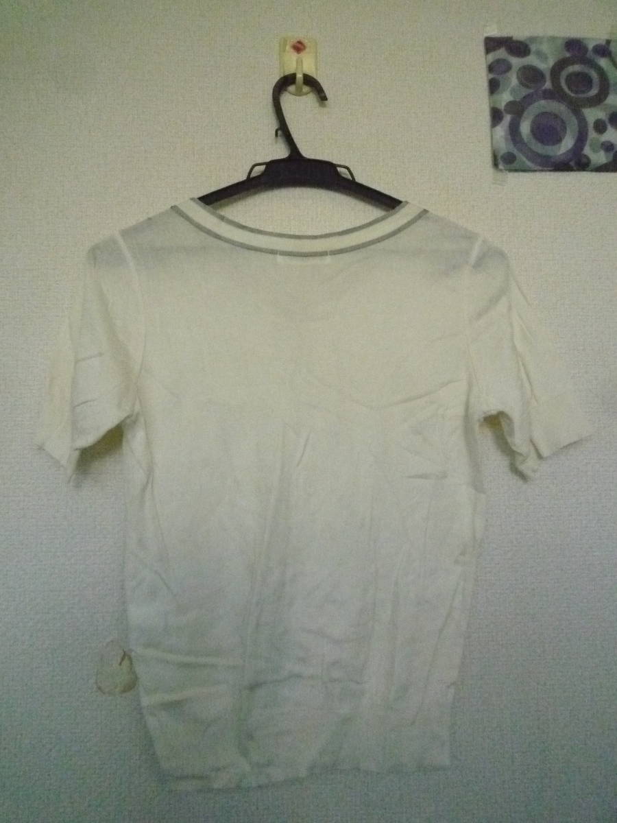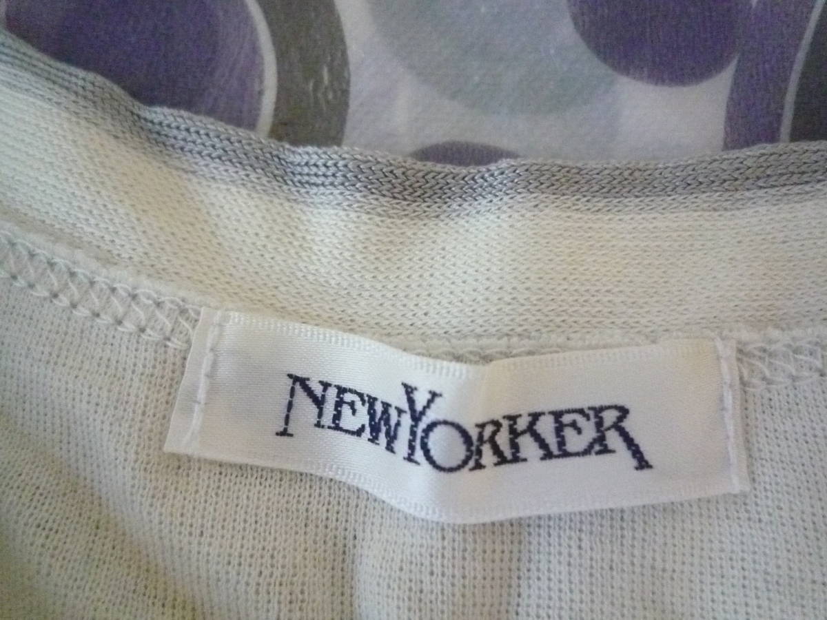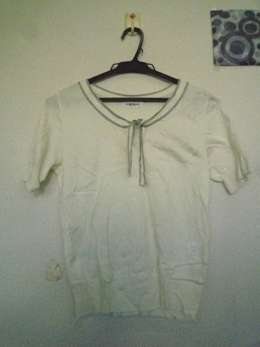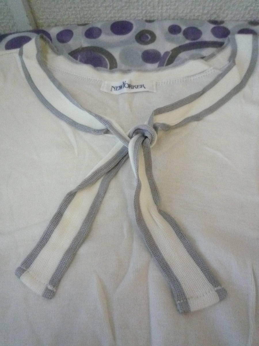 ★ NEWYORKER リボンタイ付 コットン サマーニット オフホワイト系+グレー < M > ※ 難有