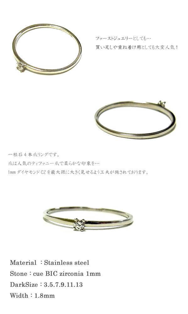 ★重ね付け★ピンキーリングOK★手入れ不要★肌に優しい★金属アレルギー&温泉&海水浴ご使用OK★ステンレスリング★シルバー&ジルコニア