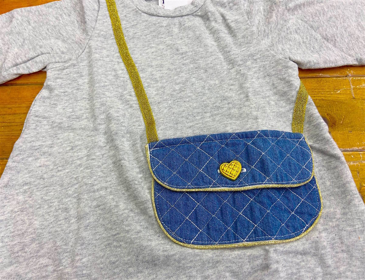 即決 新品タグ付 Donkey Jossy ドンキージョシー★デニムポシェットフェイク Aライン 裏毛トレーナー★子供 110cm 5-6才目安 ¥2090