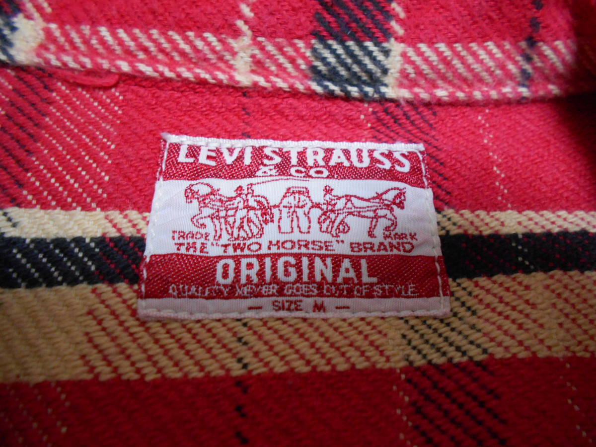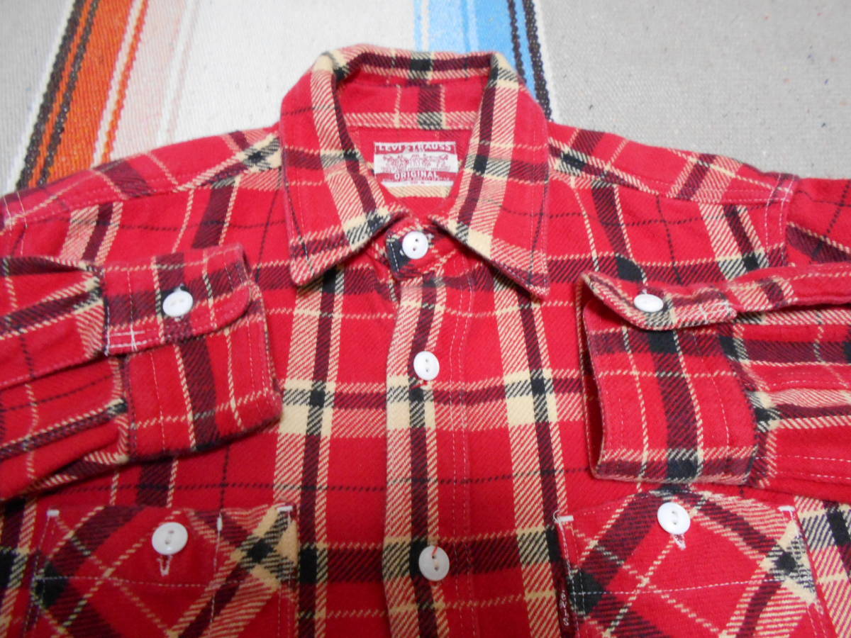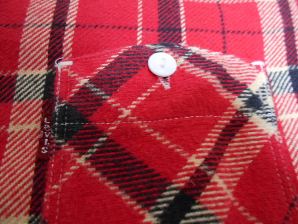 リーバイス ビンテージ 特有の良質な へヴィーウェイトビンテージコットン100% 厚手フランネル素材感、風合いある発色の ビンテージレッド × ベージュ × ブラック クラシックチェックパターン、 フラップ無しでカンヌキ補強入りの縦長胸ポケット、チェスト 「Levi's」 レッドタブ、ルーズすぎない絶妙なシルエット、裾サイドのあて布三角ガゼット + カンヌキ補強、等々...拘りぬいたディテールが極めて良い感じ