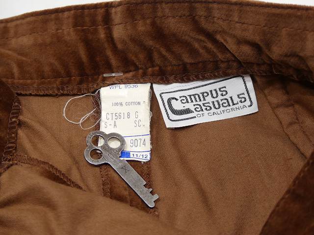 70s ~ Campus Casuals 未使用品 デットストック ベロア ハイウエスト テーパード パンツW28 | |||