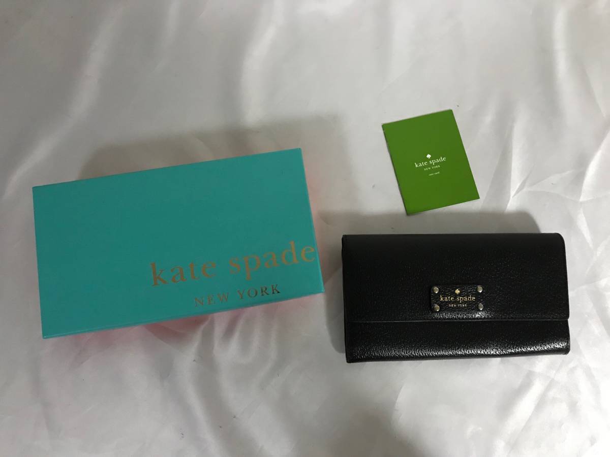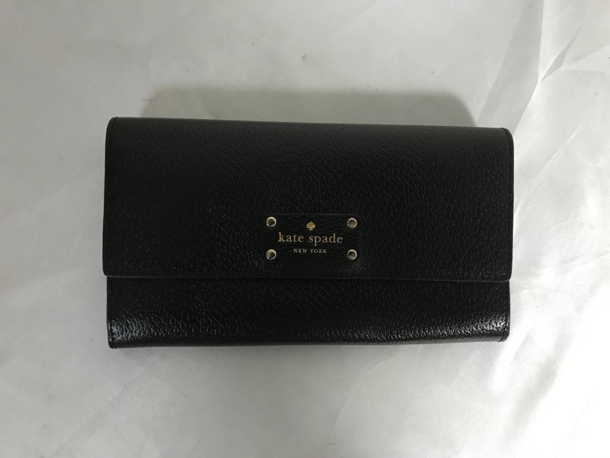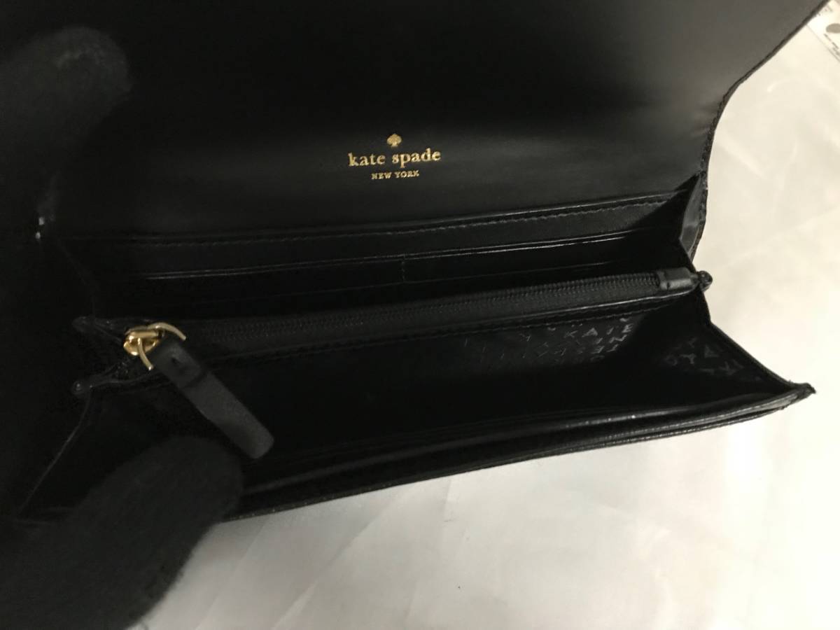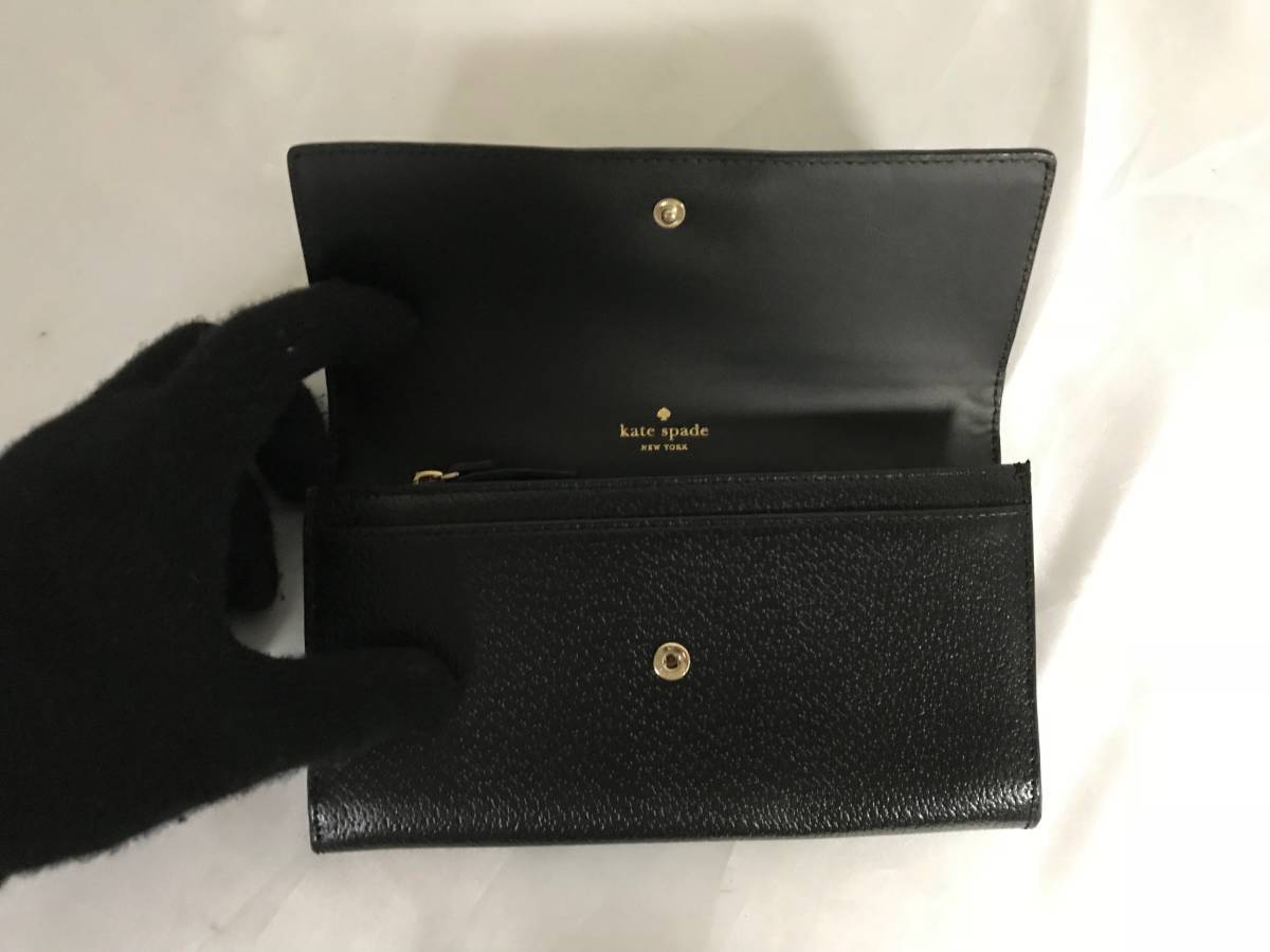極美品本物ケイトスペードkatespade本革レザー二つ折り長財布サイフレディース黒ブラックビジネス旅行トラベル