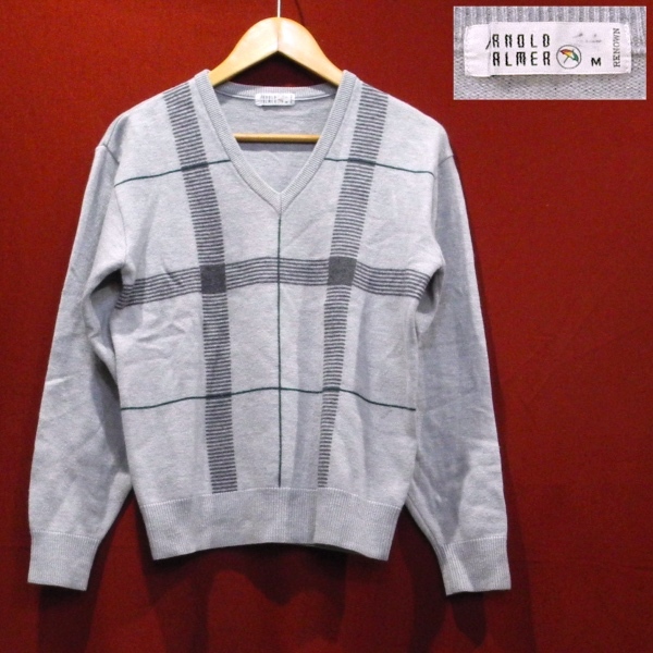 アーノルドパーマー 90’s 旧タグ ロゴ 刺繍 Vネック ウール アクリル ニット セーター グレー M 美品