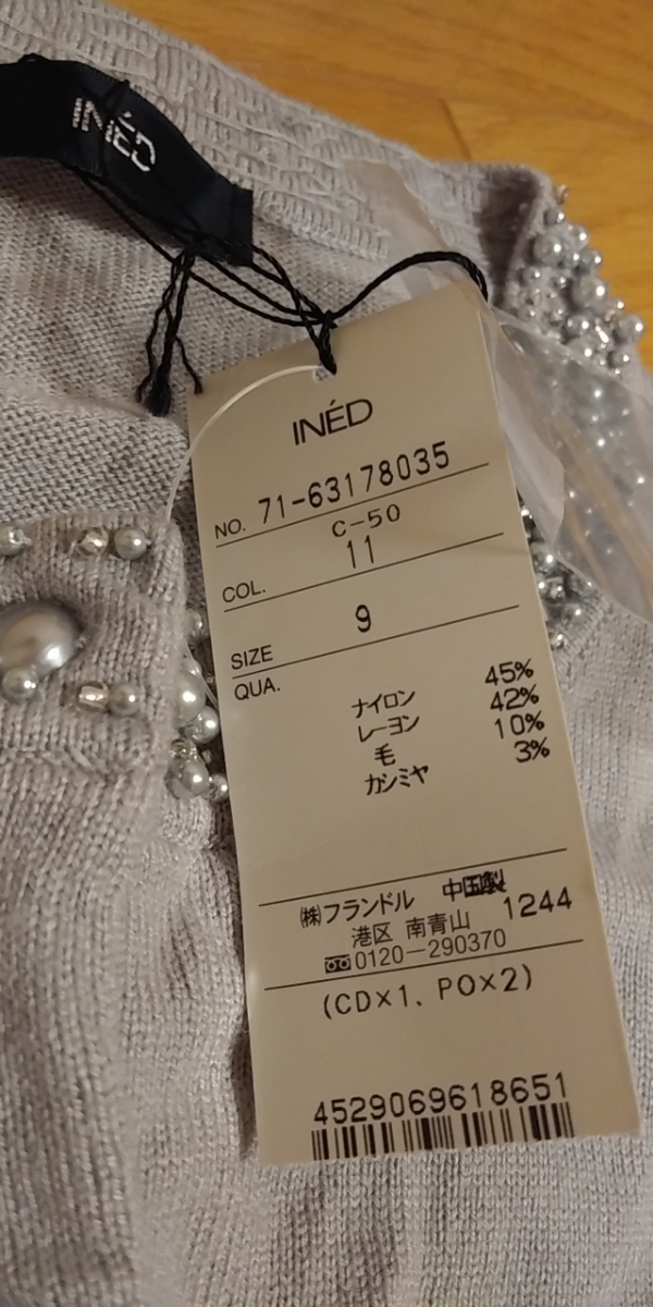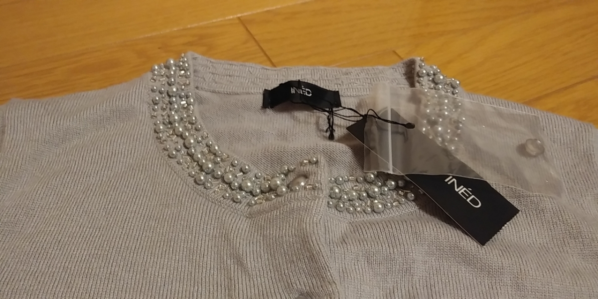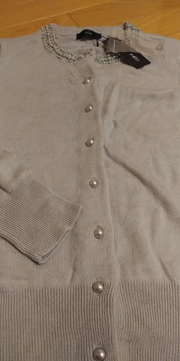 新品タグ付★イネド パール付き カーデガン サイズ9 INED★半額以下・15000円位