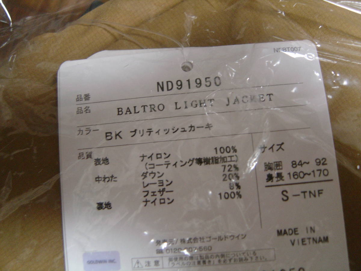 19FW THE NORTH FACE BALTRO LIGHT JACKET ノースフェイス バルトロライトジャケット ND91950 S BK ブリティッシュカーキ
