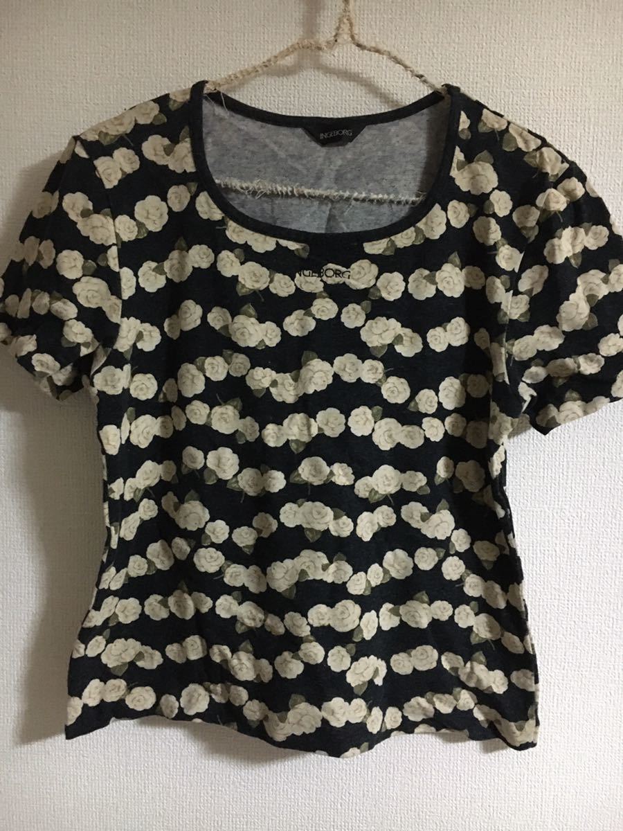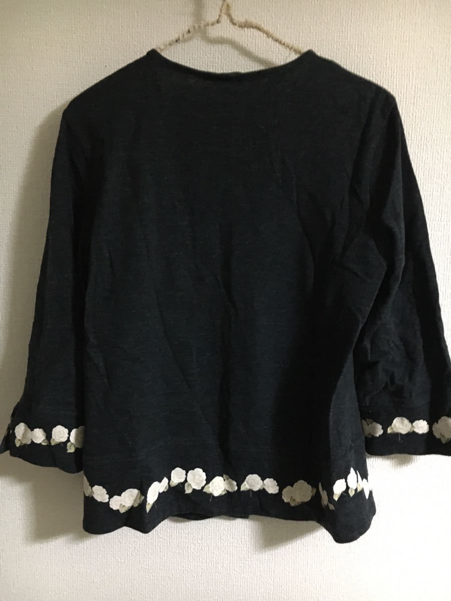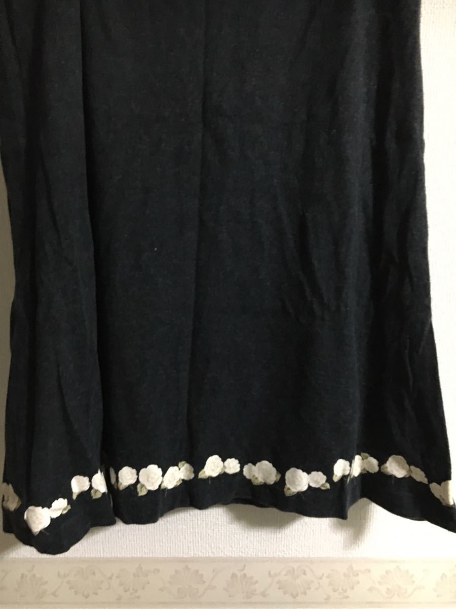 10年以上?前のお品です。サイズ表記は全てM(スカートのみサイズ表記なし)ですが、現在のLサイズくらいになります。綿100%、黒地にカメリアプリント、キャミソール、Tシャツの胸元にロゴ入り、カーディガンの前ボタンはカメリアです。大切に着たので特に難はないと思いますが、見落としがあればすみません。トレーナーとTシャツの中間くらいの厚みです。素材上、所々にネップ?ハゲ?感じはありますが、はじめからでした。スカート総丈85cm。