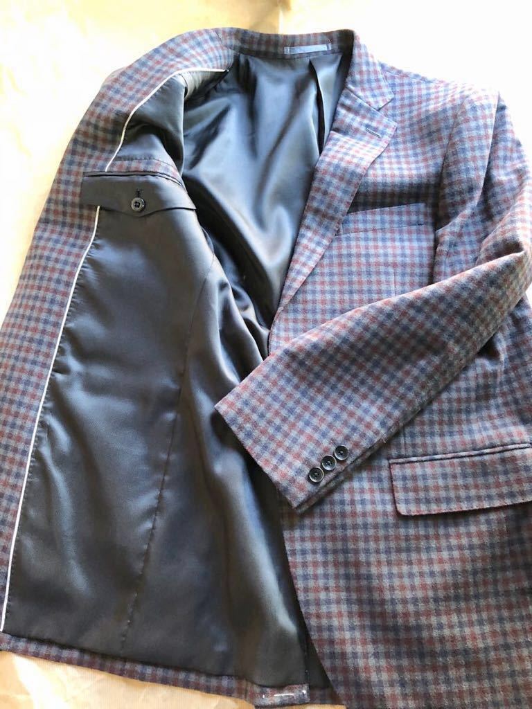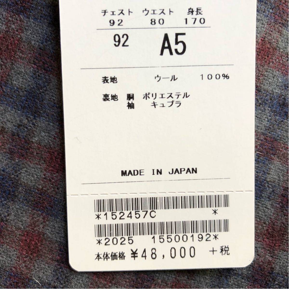 ・サイズ⇒A5 ・各寸法⇒着丈72.5cm、肩幅46cm、袖丈59.5cm、脇下身幅51cm ※素人採寸となります、多少の誤差はお許し下さい。 ・表地⇒毛100% ・裏地(総裏)⇒胴/ポリエステル、袖/キュプラ ・色・柄⇒グレー地、レッド&ブルーチェック ・ベント⇒サイドベンツ ・袖ボタン⇒3個 ・台場⇒切台場 ・商品状態⇒新品(秋冬物) R C75425 | ||