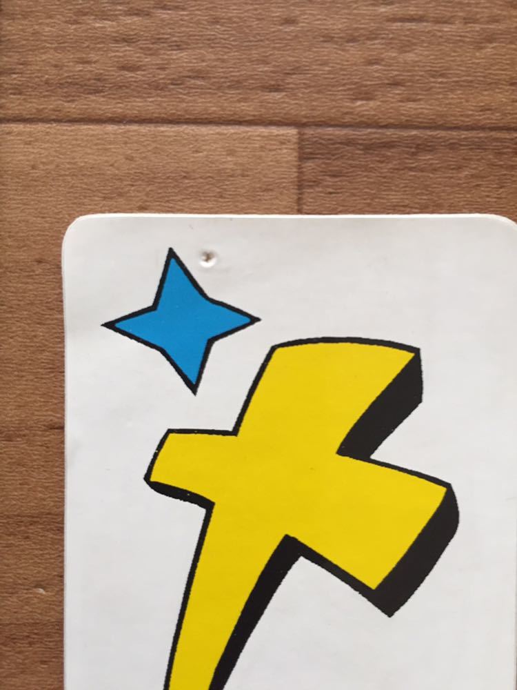 ステッカーの上下に押しピンの穴が2ヶ所あいています。