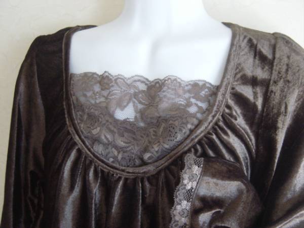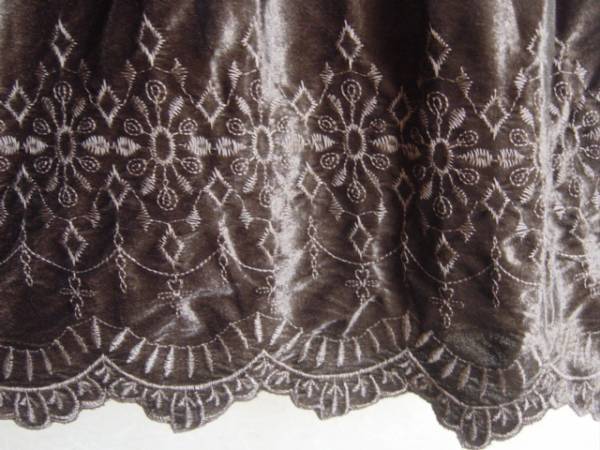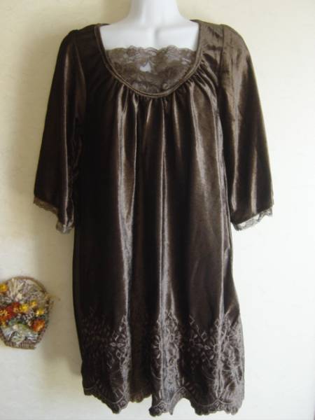 新品M★カーキベロア七分袖チュニックワンピース刺繍入り