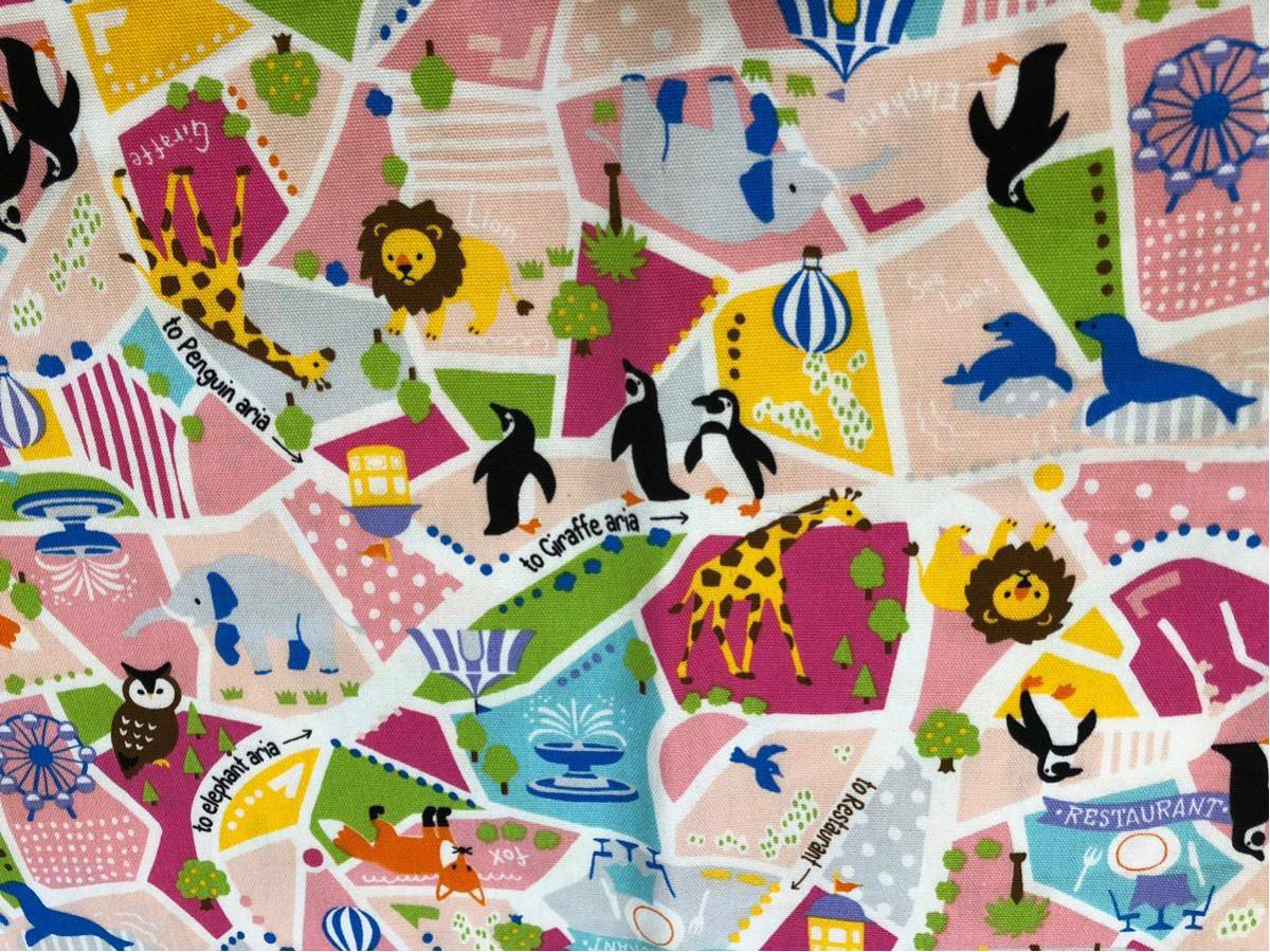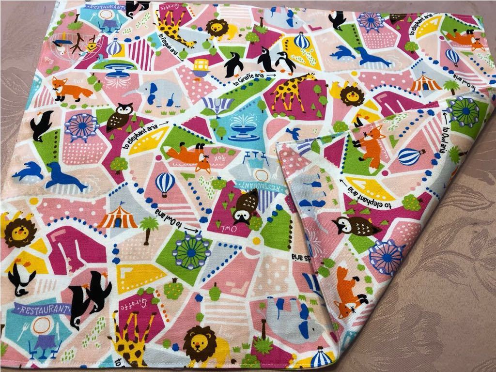 No.250 裏付ランチョンマット ハンドメイド  35x45 ピンクアニマル柄