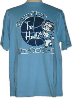 ボールの上にチーム名が、またボールを囲むように Carolina Basletball の文字、コミック調のマスコットがプリントされています。