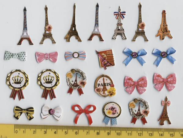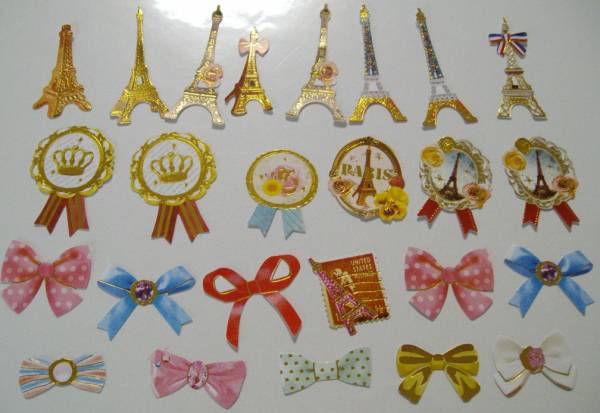 キラキラの金色箔押し、エッフェル塔、リボンなど。小さめのシールです。