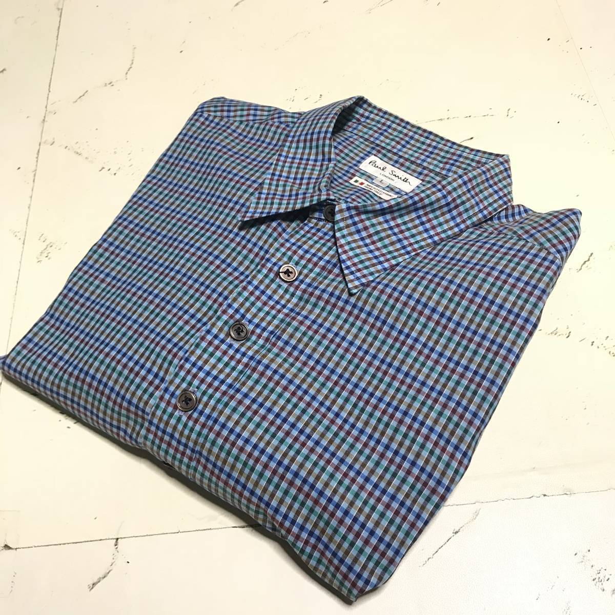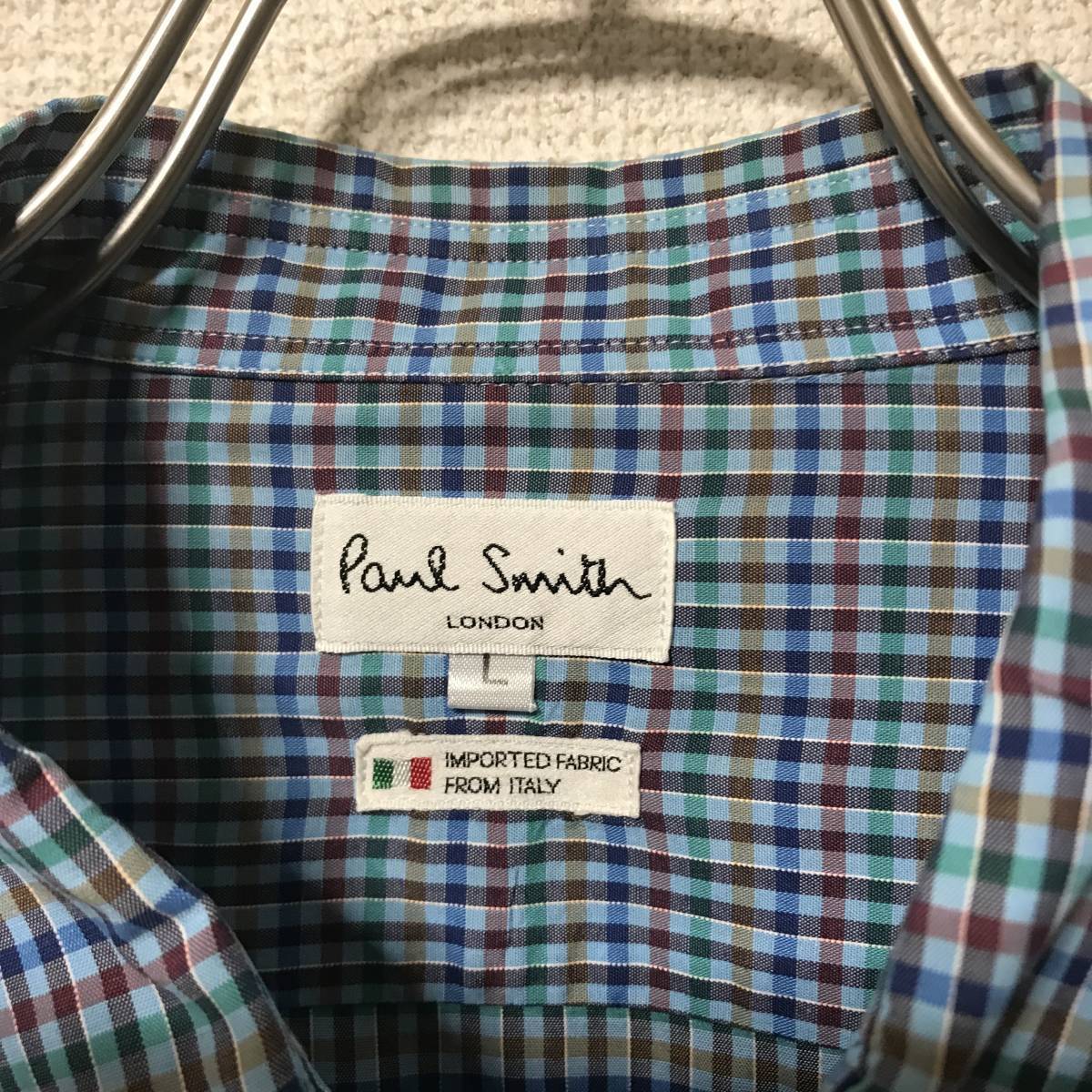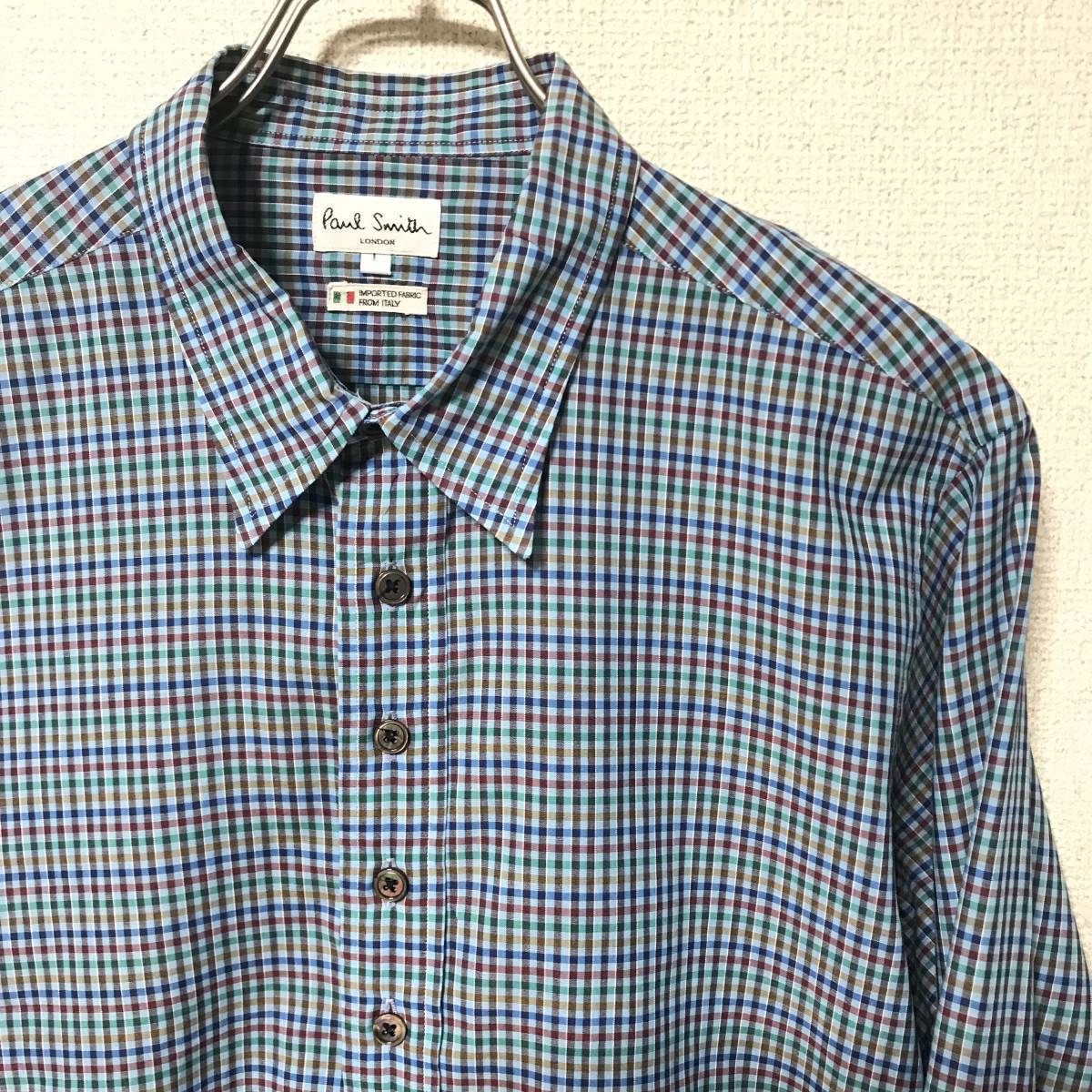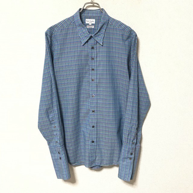 美品★Paul Smith ポールスミス★メンズ チェック柄 マルチボタン 長袖シャツ レギュラーカラー シャツ size L 青 ブルー系