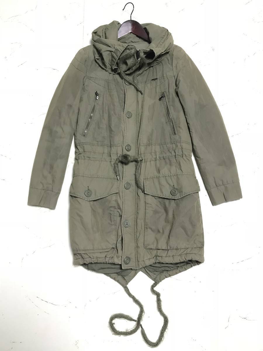 ★DIESEL/ディーゼル★メンズ パラフィンコーティング 中綿 フィッシュテール モッズコート ミリタリー コート 裏地プリント size S