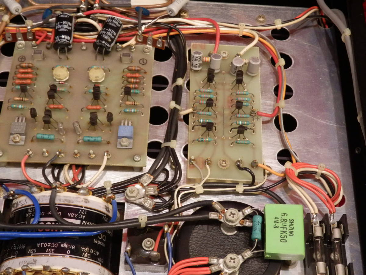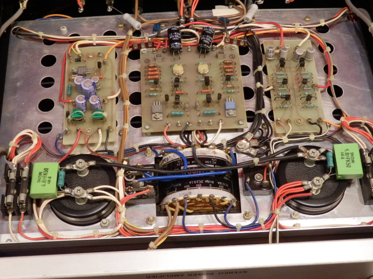 | 商品説明 | ●自作されましたステレオパワーアンプです。 ●回路につきまして、金田式とのことですが、当店では確認できません不明です。 ★毎週水曜日は店休日の為、ご連絡等は木曜日以降となります。 予めご了承願います。 ・こちらの商品は動作しておりますが無保証品。 ★動作 ・電源は入ります、音出し確認しております。2022年12月16日当店にて再確認 ・回路や配線・ケース等あくまでも自作品です。 ★外装の状態 ・フロントパネルに傷及び天板及側板等に傷や塗装剥がれがございます。 ・側面等の写真がありませんが、内部写真を多めに載せております。 ・シール等が張られております ・つまみ等に汚れがあります。 ★内部の状態 ・電源は入ります音出し確認しております。 ・内部トランス等取り付けシャシーが、トランス等の重さで中ほどで沈み込んでおります。 ・電源トランスは、TANGO DC-35 が使用されています。 ・パワートランジスターは東芝2SD425・2SB555等が使用されております。 ・取付けネジが無い箇所があります。 ・錆等があります。 ★掲載の写真をご確認の上入札お願いします。 ★付属品:本体・電源ケーブルのみ。