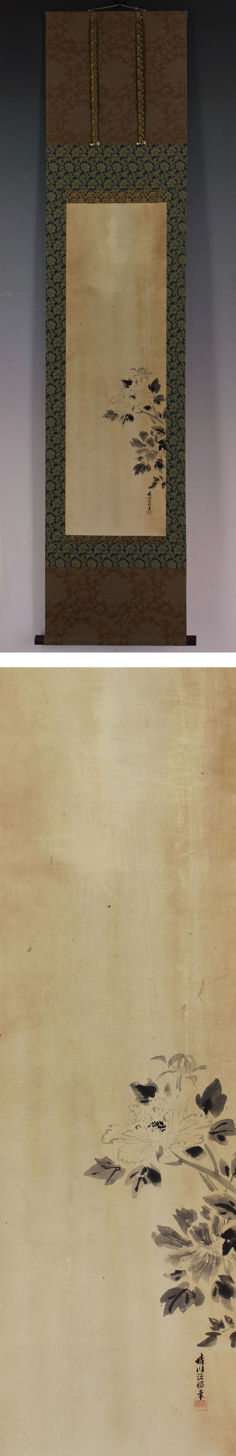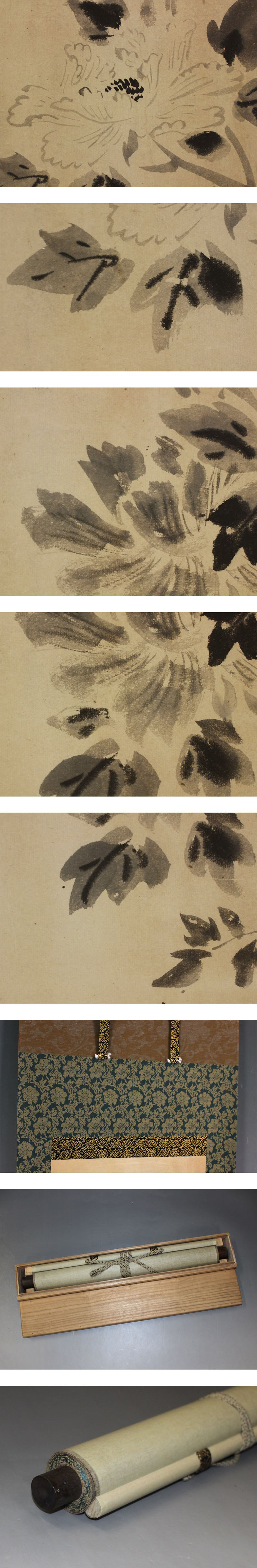 | №1805202c【真作】狩野晴川院【水墨牡丹図】◆紙本◆合箱◆改装済掛軸 | |