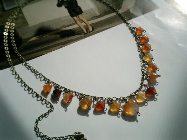 巴里・マチルダシリーズです♪ロマンチックを見つけて!のネックレスです!さりげなく華やかな素材を合わせてアンティークな雰囲気です♪巴里の裏町をイメージして作りました♪カーネリアンのハートは8ミリから10ミリ位までの大きさ違いです♪♪シンプルなデザインで様々な個性的なお色が際立ちました♪♪長さは全長64センチ位で調節自由です♪飽きのこないいつまでも着けられるデザインを考えて作りました!お揃いのブレスレットも出品しています♪ハンドメイドをご理解頂いてノークレーム、ノーリターンでお願いします
