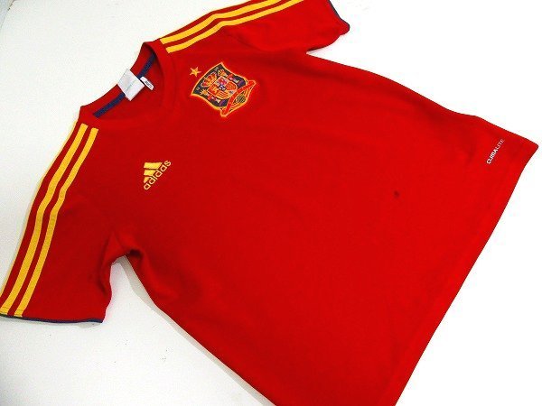 | ★adidas製スペイン代表ユニフォームです。 ★正規品 ★素材:画像をご参照下さい。 ★表記サイズ:160 ★計測サイズ(平置き):着丈(後襟の付け根~裾)55cm 身幅46cm 素人採寸の為多少の誤差はご了承ください。 ★状態:10/5くらいです。腹部に汚れなどの使用感はありますが着用に問題のある大きなダメージは特にありません。練習用にいかがでしょうか。画像にて判断願います。 |