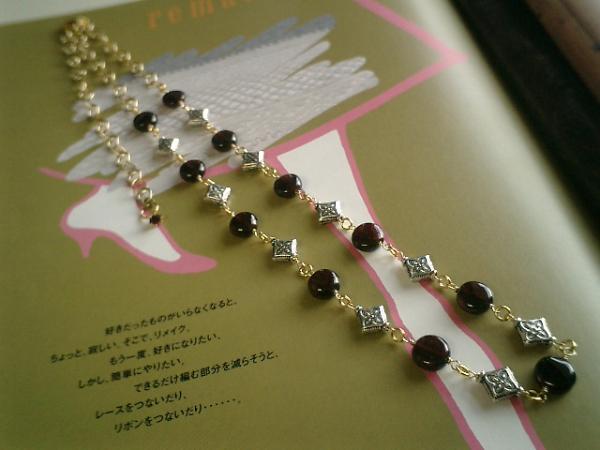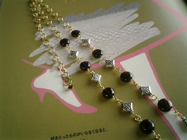 巴里・マチルダシリーズです♪ロマンチックを見つけて!深い赤のガーネットのネックレスです!シックなお色でまとめてアンティークな雰囲気です♪巴里の裏町をイメージして作りました♪ガーネットは8ミリのコイン型です♪お花模様のチャームを合わせてシックで華やかな雰囲気です♪深い赤のガーネットに淡いゴールドのデザインチェーンを合わせて大人っぽい可愛さです♪長さは全長67センチ位で調節自由です♪シンプルで飽きのこないいつまでも着けられるデザインを考えて作りました!お揃いのブレスレットも出品しています♪ハンドメイドをご理解頂いてノークレーム、ノーリターンでお願いします