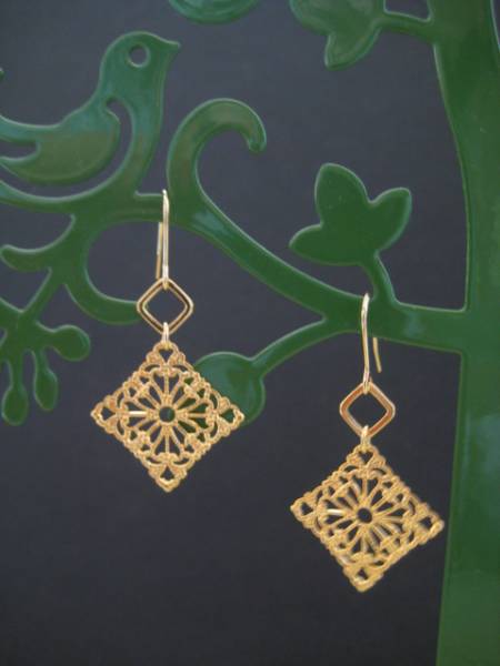 ◆スクエア透かしピアス◆新品 華奢 上品 ゴールド スカシ シンプル レース 繊細 四角 縦長 大ぶり フック 軽量 揺れる 大人可愛い