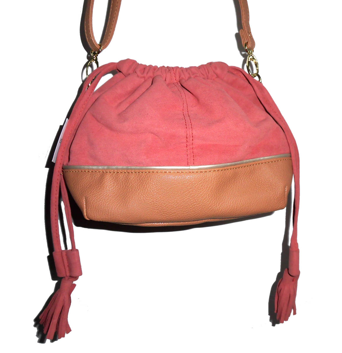 バッグの開き口が巾着のように紐で絞れる様になったデザインで、サイフや携帯電話等の必要最低限の物が入る大きさのアイテムです。