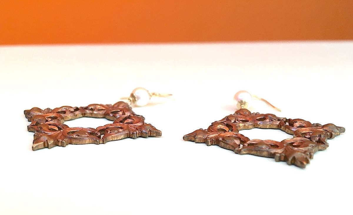 そのパーツに日本の繊細なあこや真珠を合わせ、ひとつひとつ手作りしていらっしゃいます