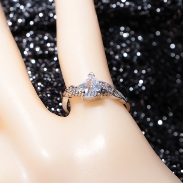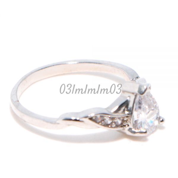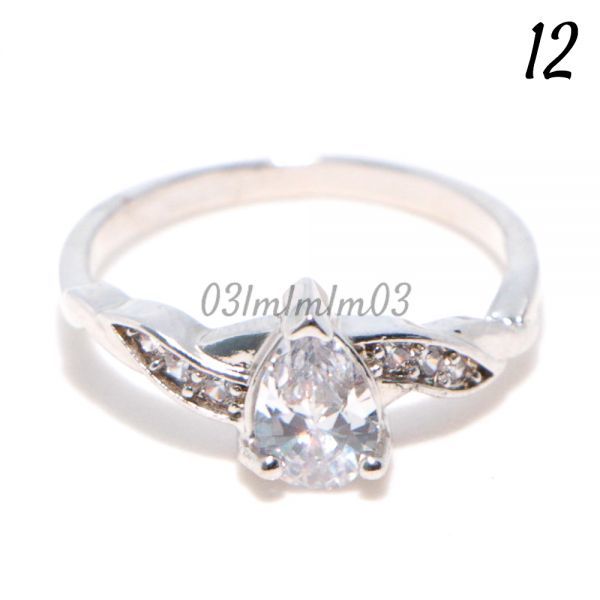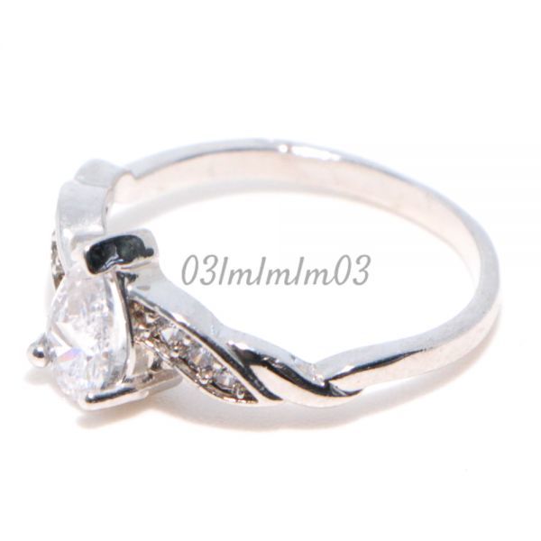 【送料無料・即決】C218 リング 12号 CZダイヤ キュービックジルコニア ティアドロップ 雫 ホワイトゴールド コスチュームジュエリー 指輪