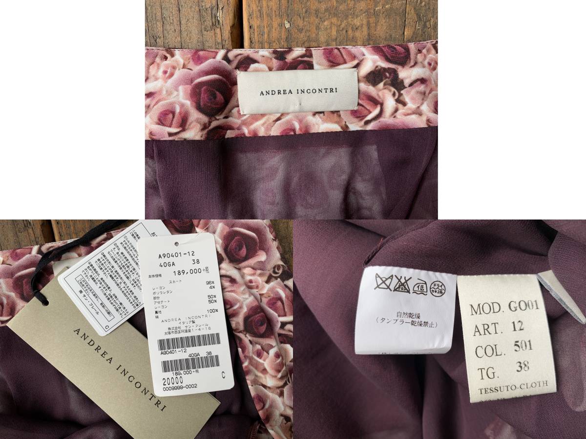 ★未使用★ANDREA INCONTRI★アンドレアインコントリ★ボトム★フレア★スカート★ローズ★バラ★フラワー★レディース★サイズ38★