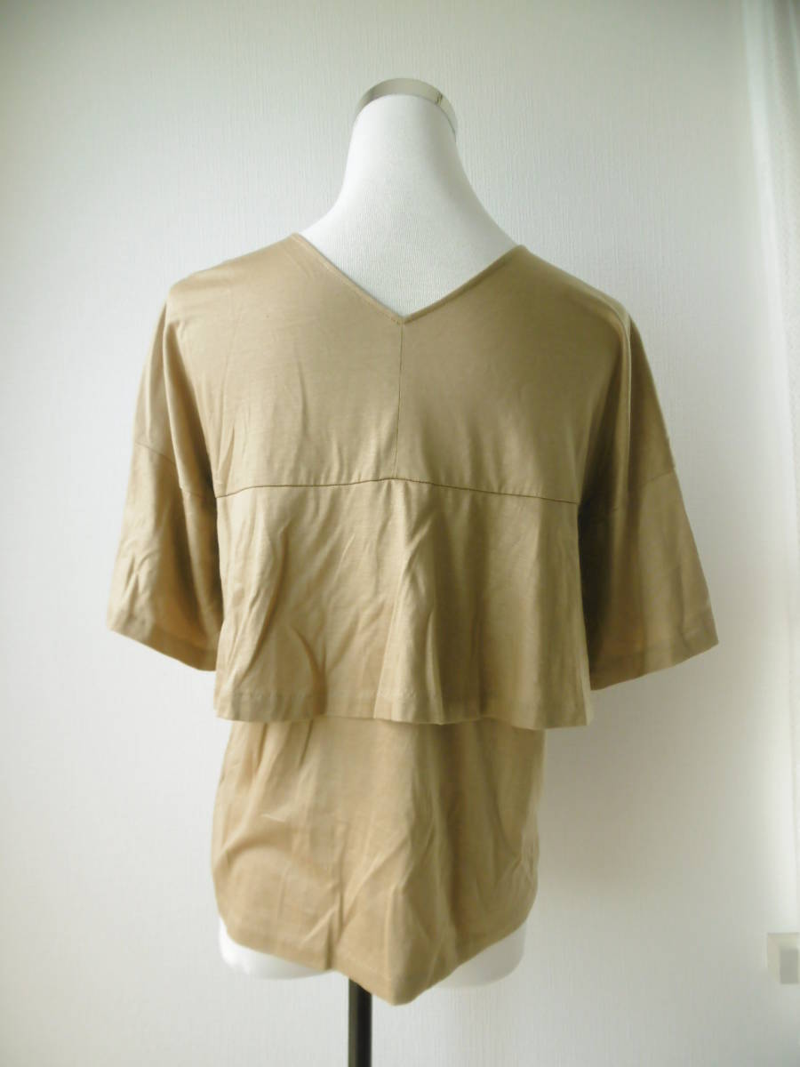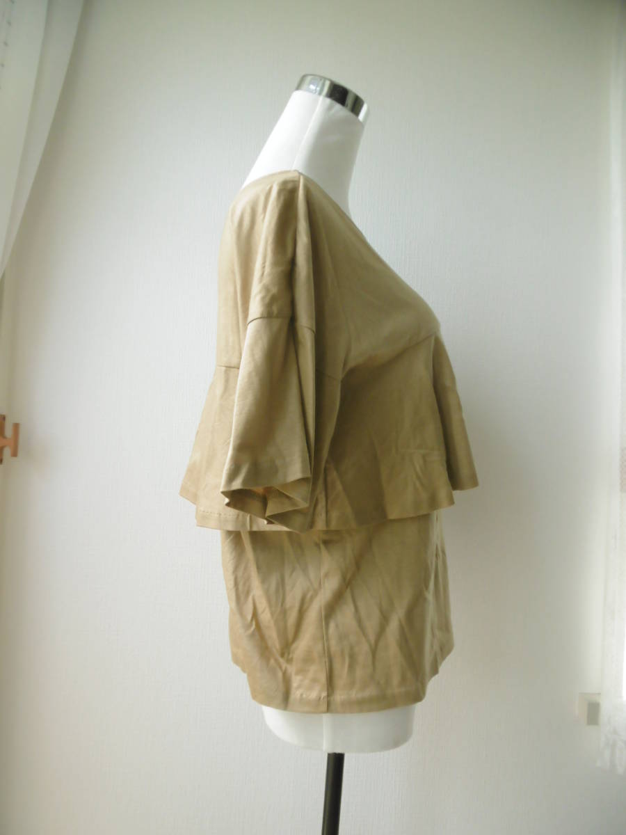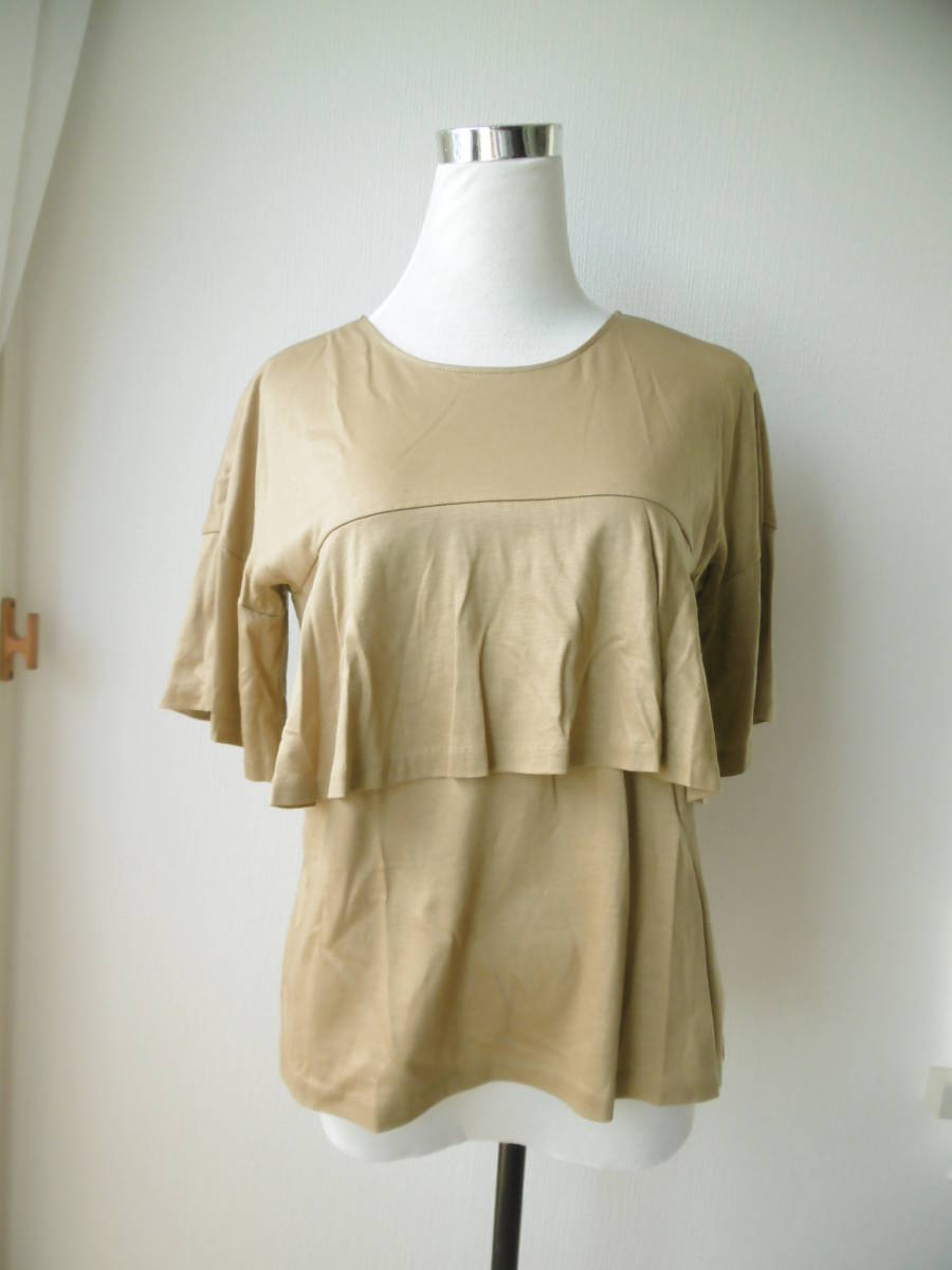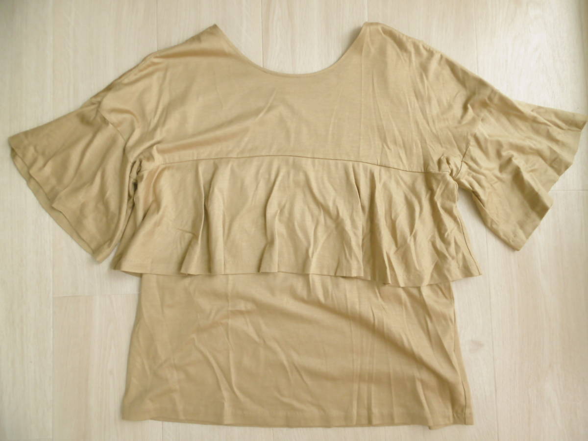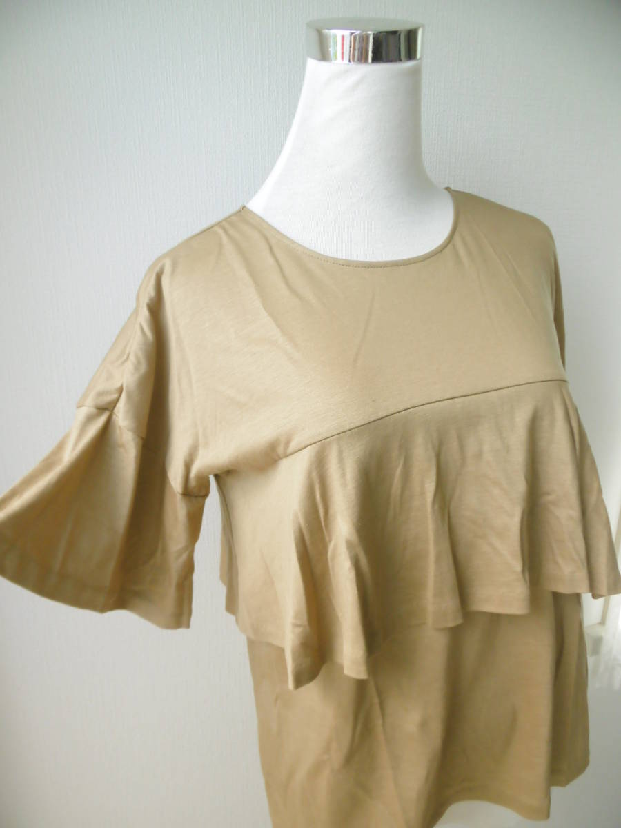 美品 ROPE mademoiselle ロペ マドモアゼル ベージュ 袖フレアー フリル 半袖カットソー 38 春夏秋トップスTシャツ