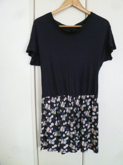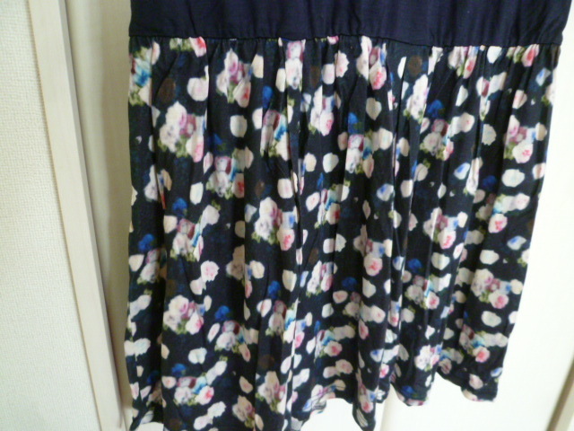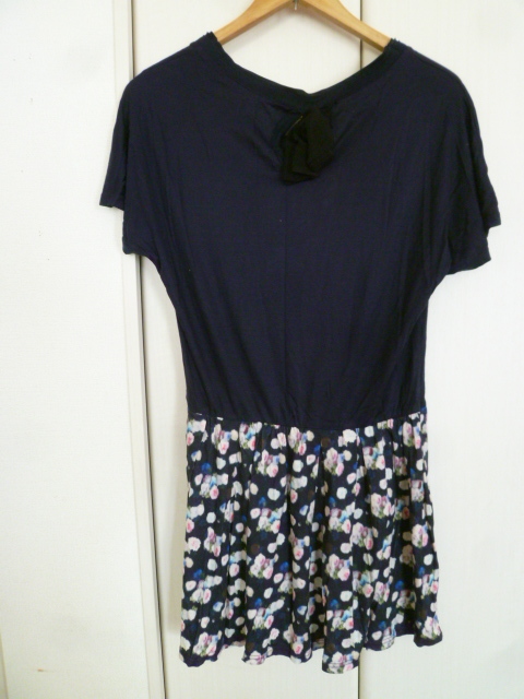 Cynthia Rowley/シンシアローリー○紺背中リボンぼやけストーン宝石風柄チュニックワンピース2/イトキンネイビー半袖○OP1113
