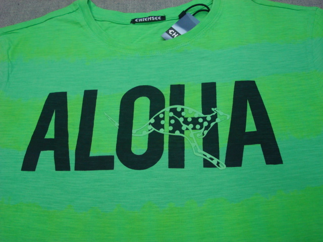 新品CHIEMSEE(キムジー) メンズTシャツKOI 13-0340 GREEN GECKO (S)です、2020年春夏モデルです、2011年春夏モデルよりCHIEMSEE(キムジー)PLUS MINUS(プラスマイナス)とカテゴリーがなくなり一括してCHIEMSEE(キムジー)というカテゴリーになりました!正式名は→KOIといいます!正式カラー名は→13-0340 GREEN GECKO といいます!メンズのタイダイボーダー柄のTシャツです!フロントにALOHAのロゴと皆さんお馴染みのキムジーのトレードマークのカンガルーのプリント!っと思いきや!カンガルーのみゴムで表現し仕上げてあります!そして、キムジーらしい綺麗なボディカラーで何とも言えないカラーの色使い!キムジーらしい密かに凝ったキムジーファンなら絶対持っておきたい非常に雰囲気の良い1品です!Sサイズです、背丈71cm、肩幅46cm、袖丈20.5cm、身幅51cmです、生地素材:コットン100%です!この商品のフルプリントの為、商品によってプリントに柄の配置が若干異なりますので、ご了承、ご理解下さい!色の方は、各パソコン、デジカメによって多少異なりますので、ご了承下さい、ノークレーム・ノーリターンでお願いいたします。ご質問に関しましては、火曜日を除く、午後12~午後9(21)時までに、お早めにお願い致します。この商品以外も、その他、色々出品しておりますので、是非ご覧下さい。