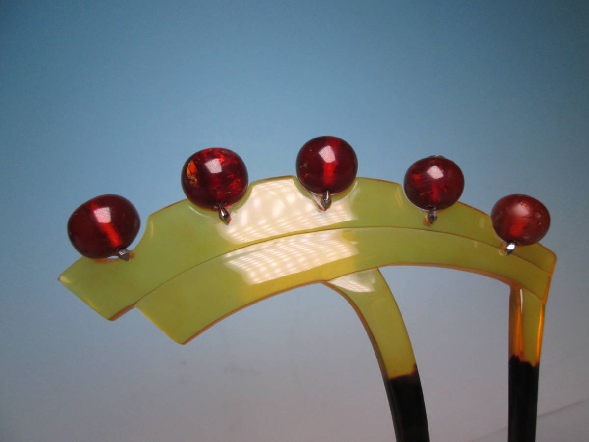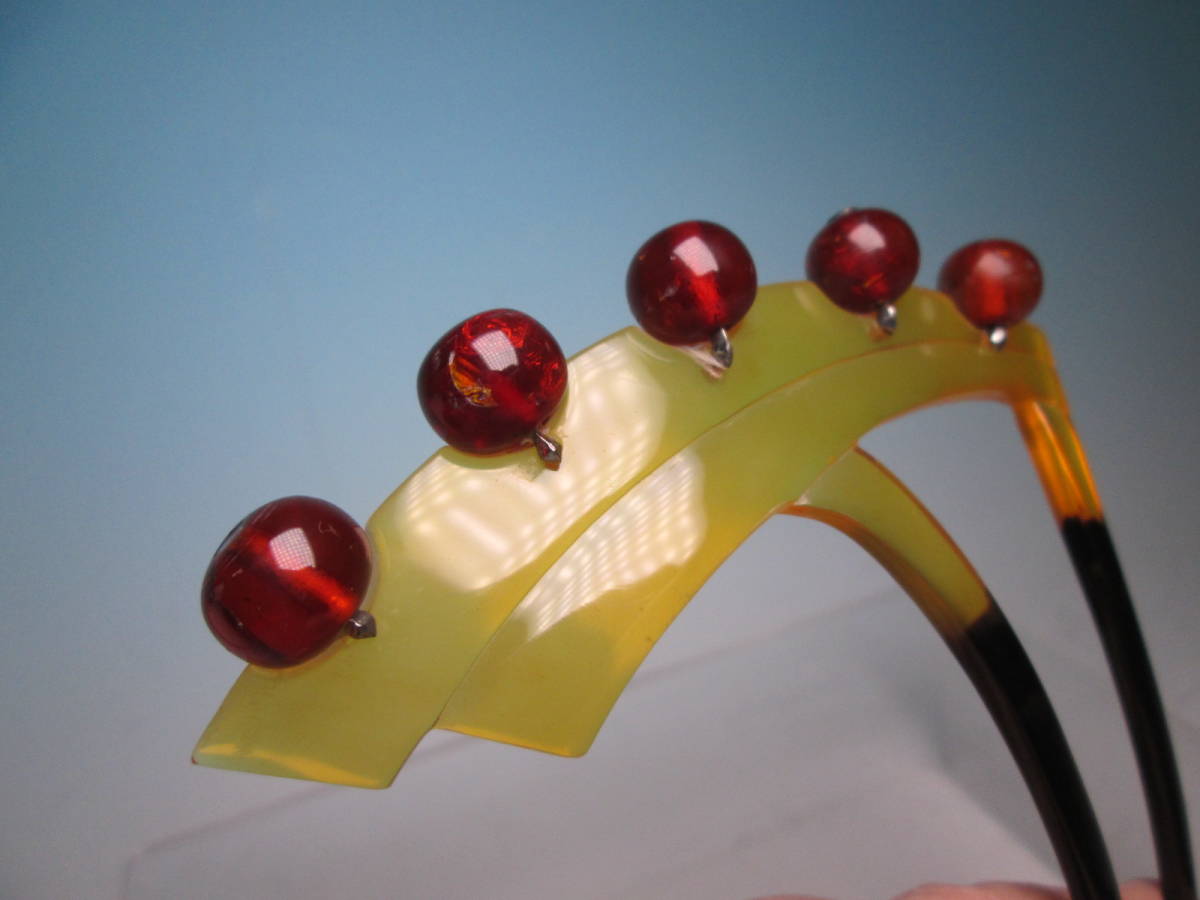 【江月】アンティーク・本鼈甲 天然琥珀玉飾りのかんざし 共ケース付