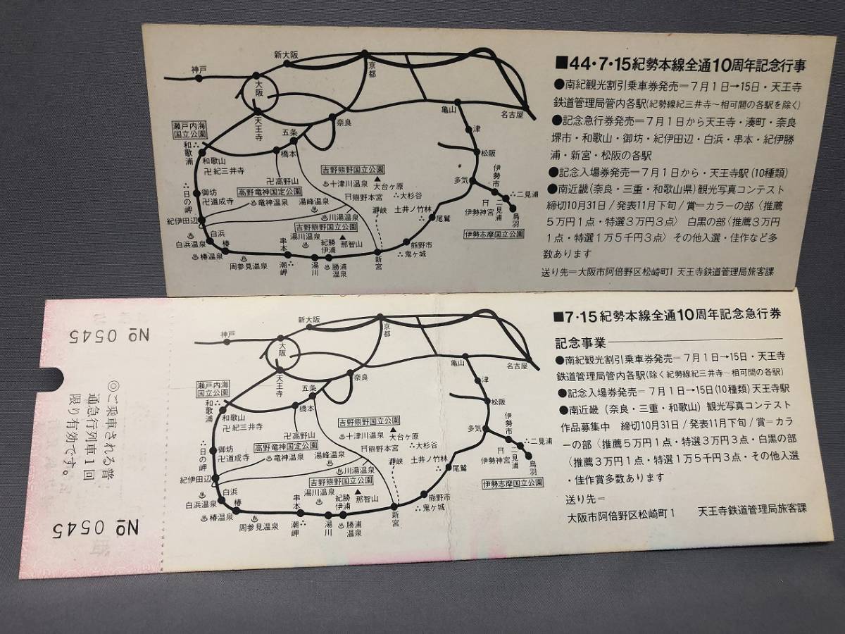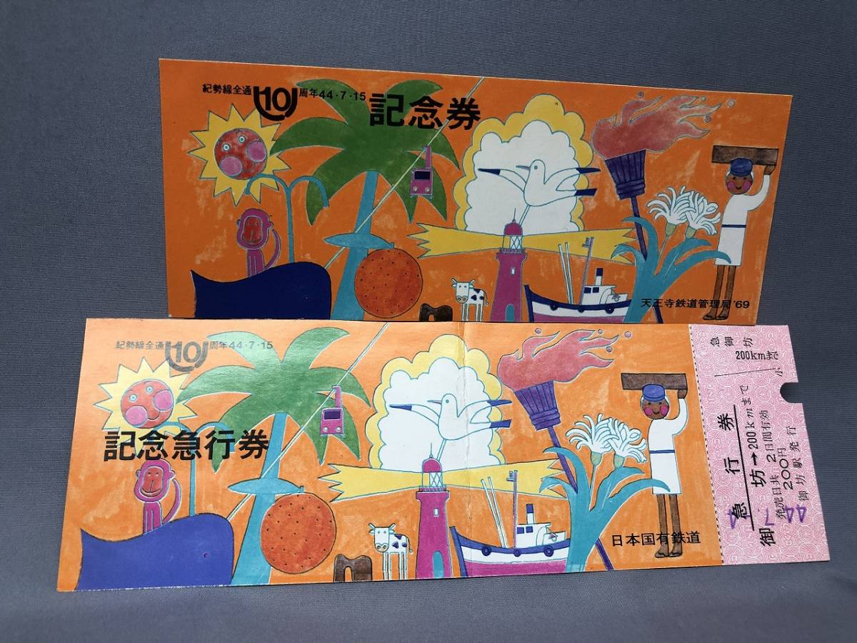 紀勢線全通10周年 記念急行券・記念券 昭和44年 天王寺鉄道管理局 【K2-23】