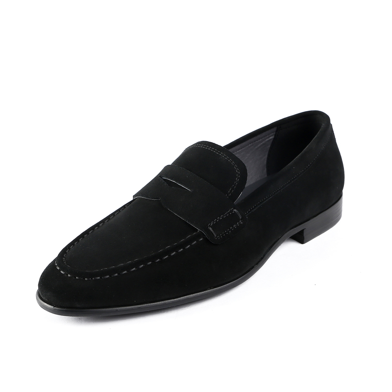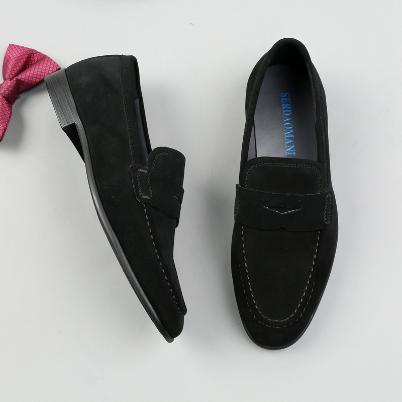 新品♪メンズビジネスシューズ 紳士靴 コインローファー 本革 レザー 牛革 ヨーロピアン スエード Uチップ◆ブラック SE103e◆26cm