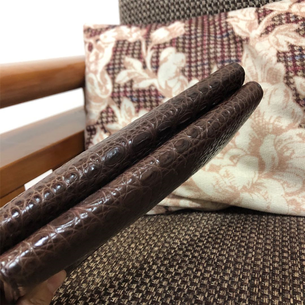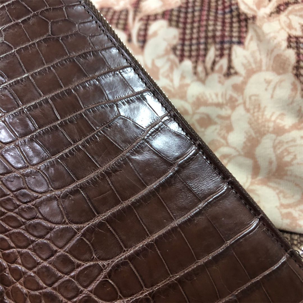 本物のワニ革を使用し、使い込むことにより味が増し、深みのある色に変化していくので光沢の変化も楽しめます。
