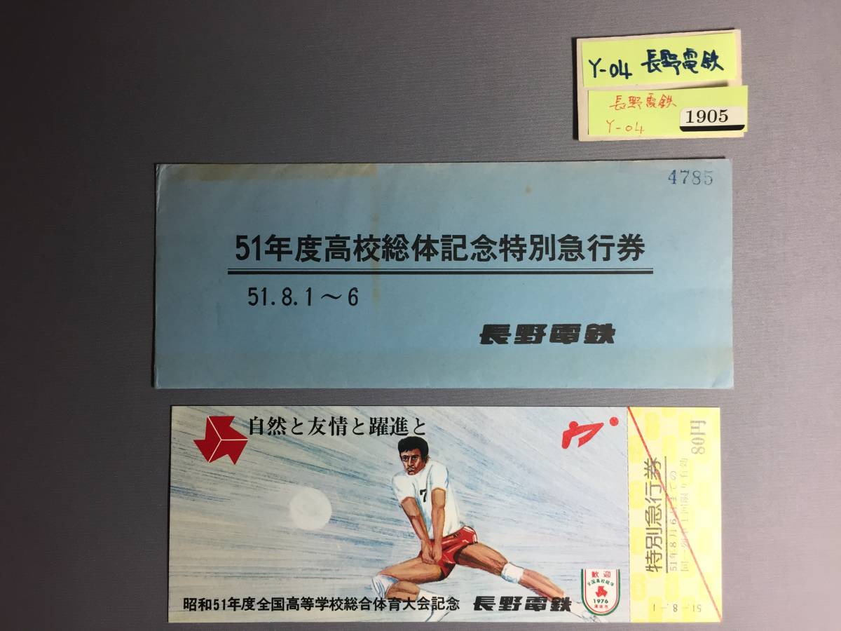 長野電鉄 51・8・1~6 51年度高校総体記念特別急行券 特別急行券3枚 【Y04-1905】