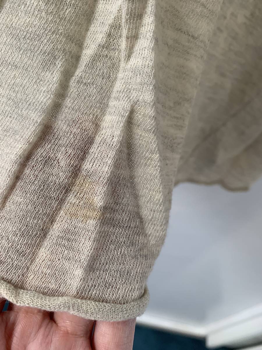 数回着用した中古で、前身ごろ中央と裾に茶色っぽい薄いシミがあります。