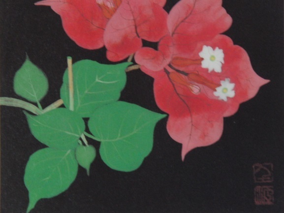 中島千波、ブーゲンビリア、きょうの料理、希少画集画、 新品高級額付、送料込み、iafa