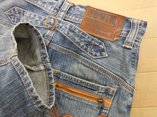 f690★エドウィン4524 ハーフジーンズ★W28 ユーズド加工 デニムショーツ★即決★