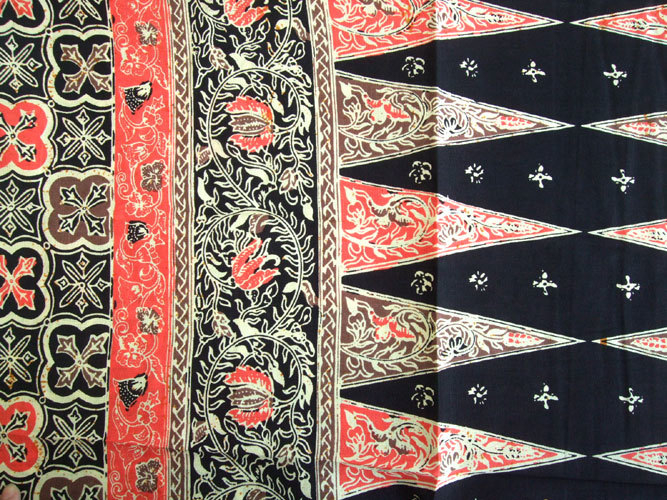 インドネシアの伝統的なろうけつ染めの更紗布(バティック)です。 鮮やかな色使いが素敵な一枚です。