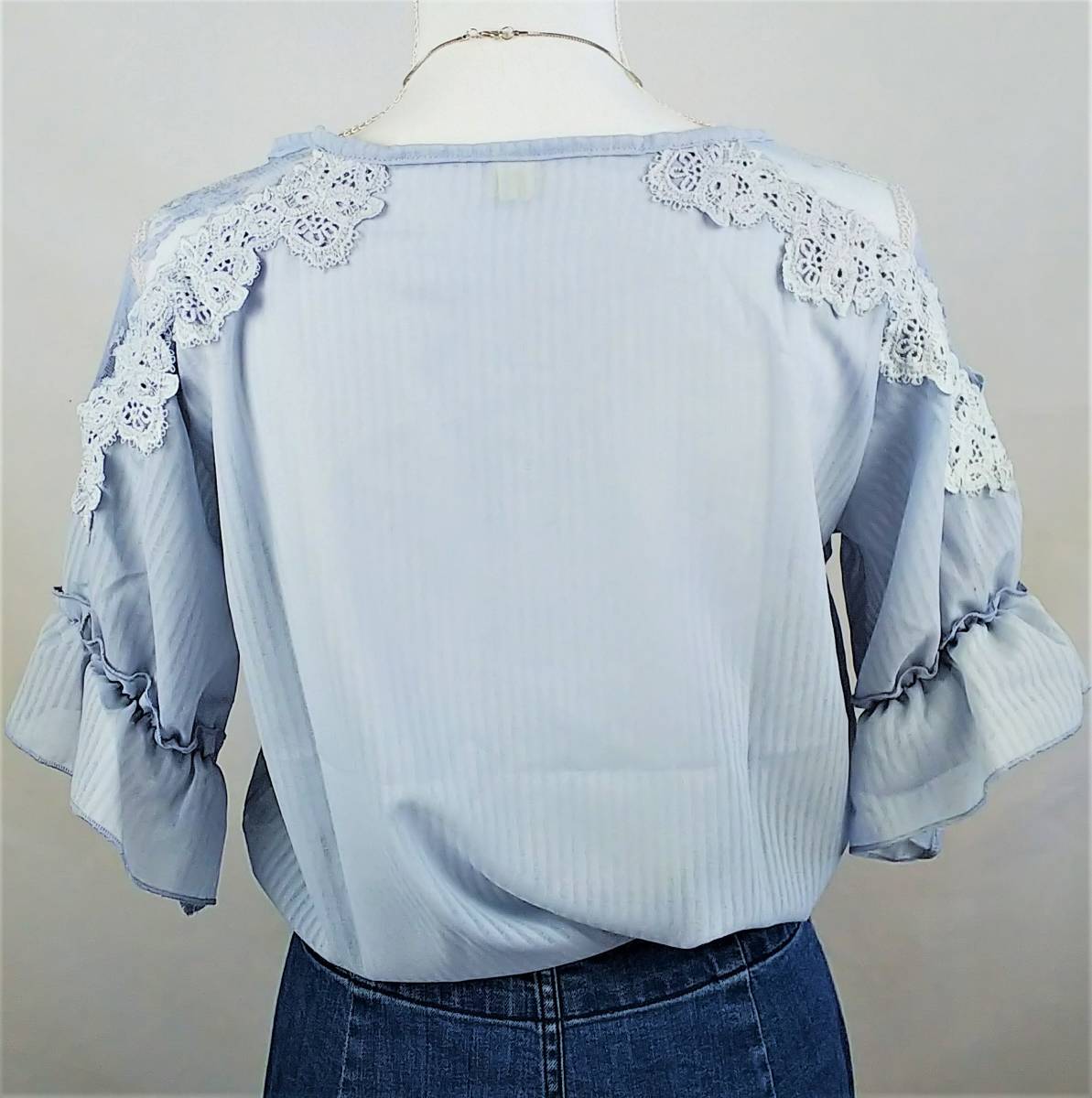 | 当方のオークション商品をご覧頂き有難うございます。 ご落札の際は誠心誠意対応させていただきますので 宜しくお願い致します。 ご質問がございましたらお問い合わせください。 【商品の説明】 素材 :ポリエステル100% 透け感 あり 裏地 なし 生地の厚さ 薄手 生地の伸縮性 若干 寸法:《Mサイズ》 着丈 60cm 裄丈 38cm バスト 94cm ※寸法は、若干の誤差はご了承下さい。 カラー:ブルー エレガントなレースと女性らしいバルーン袖が大人の女性を 演出します。 肩のシースルーがこれからの暑い季節にピッタリで涼しさUP♪ また袖のフリルが可愛さを引き立てます。 全体的に透け感があるのでキャミやタンクトップを合わせて 使用すると良いと思います。 【注意事項】 ・撮影のカメラ、パソコンの画質などによって色目が異なって見える場合が ございますのでご理解頂ける方のみ入札をお願い致します。 ・ご落札より48時間以内に連絡がない方は「落札者都合」でキャンセルさ せていただくことがございます。 その際は不本意ながら悪い評価が付くことになりますが何卒ご了承ください。 ・何か質問等ございましたら事前に質問欄にてご連絡下さい。 オークション 終了間際の質問にはお答えできない場合がございますので予めご了承ください。 ・評価の内容が酷い方(自己都合でキャンセルをしたことがある、または落札後 連絡なしの事実があると評価で判断できる方)の入札、落札は取り消しにする 場合があるのでご了承ください。 ・ノークレーム・ノーリターンにてお願いいたします。 ご不明な点は必ずご質問ください。 | |||