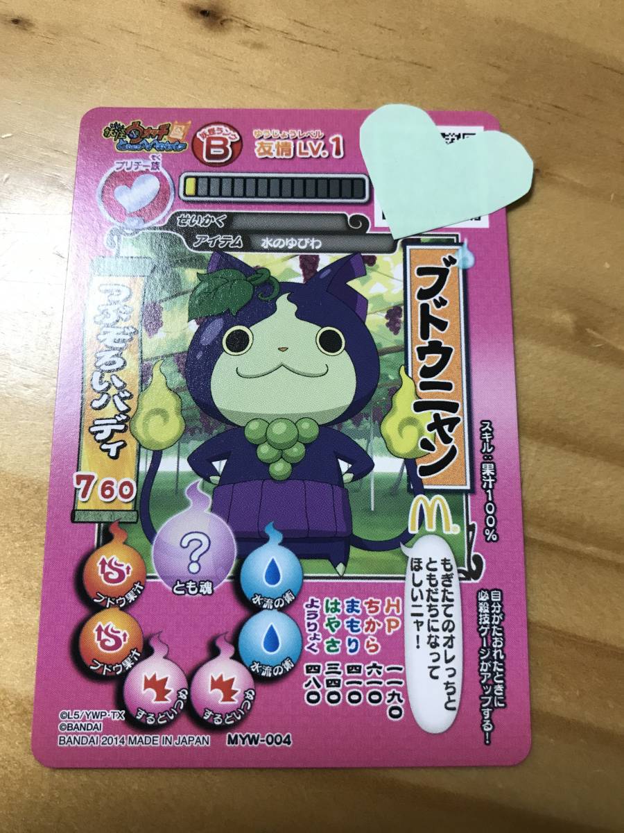 ブドウニャン妖怪ウォッチともだちうきうきぺディア未使用カード