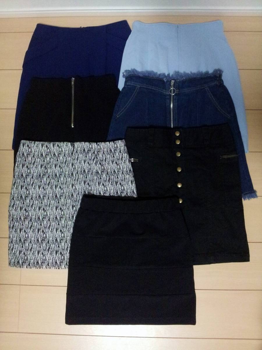 ひざ丈のスカート7枚セットです。7枚とも総丈45cm前後です。