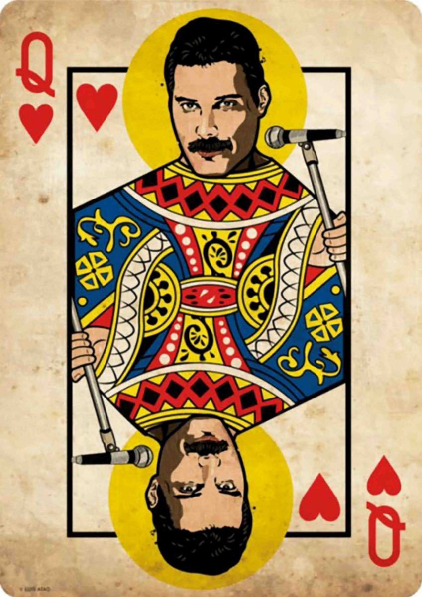 イギリスの国民的バンド、QUEENとトランプのQUEENを掛けてフレディ・マーキュリーをデザイン。