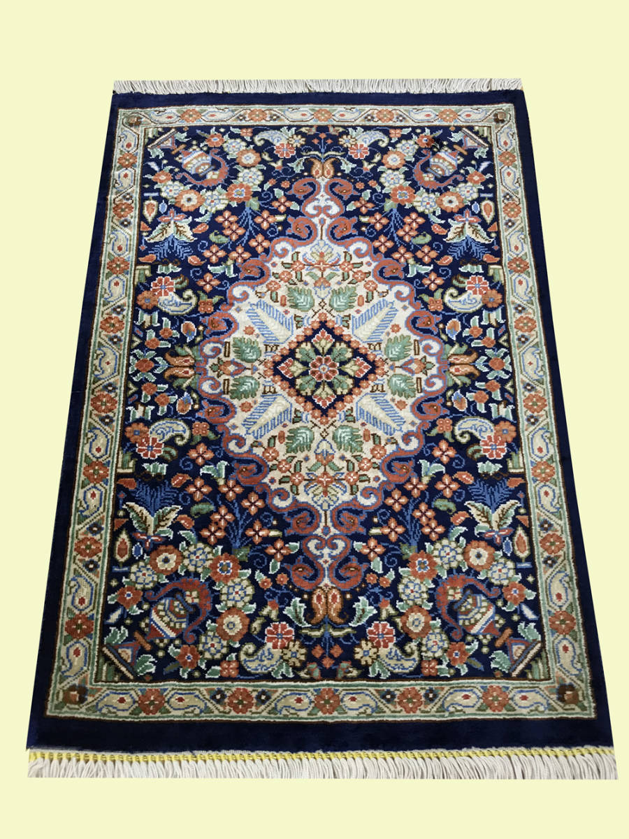 ☆ 手織りペルシャ絨毯 クム産高級シルク100% Q-127 ☆